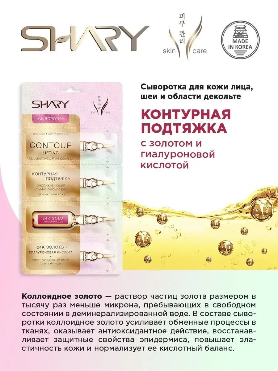Сыворотка SHARY "Контурная подтяжка" с коллагеном и золотом, антивозрастная, 24+, 12 ампул информация:
