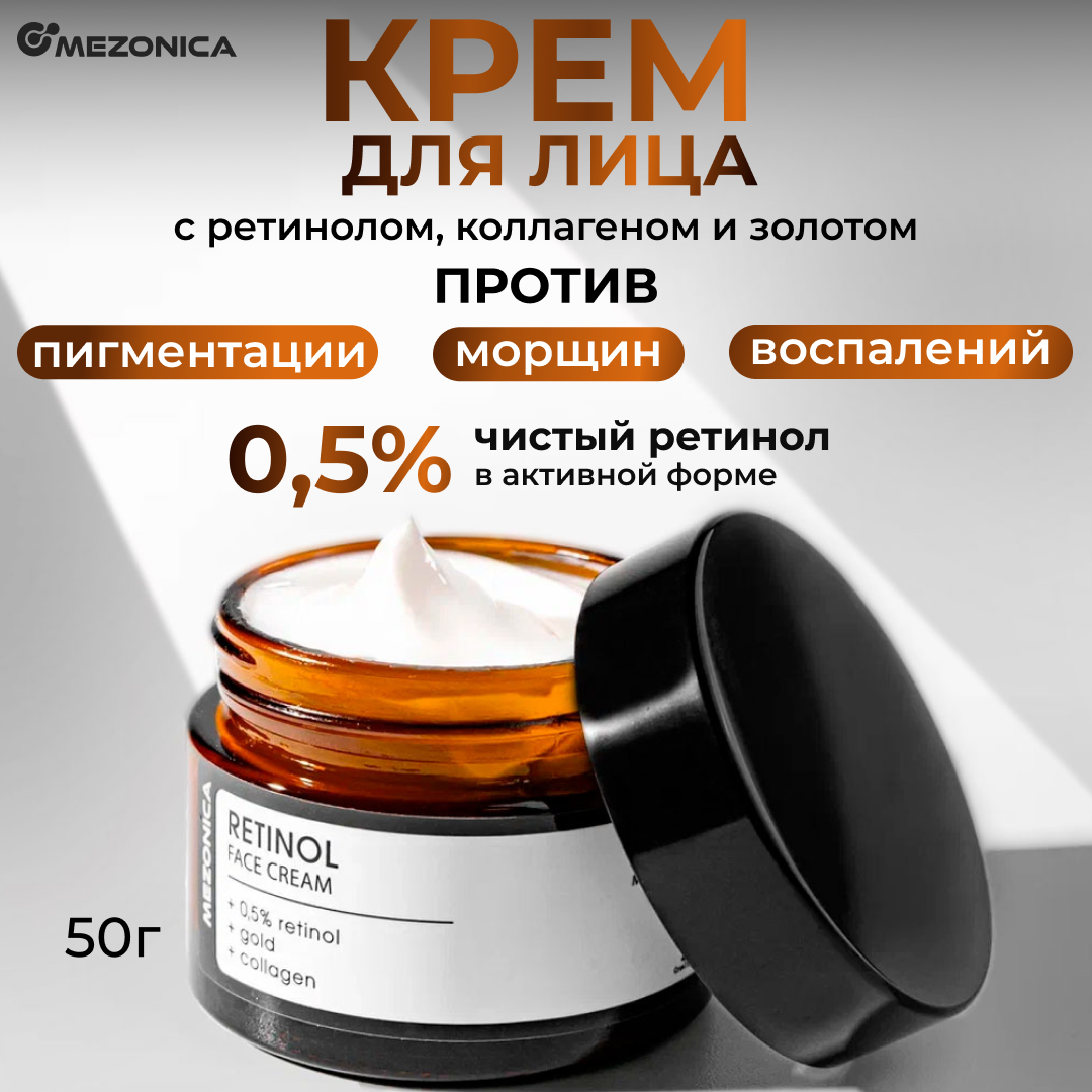 10 цен на Крем для лица с ретинолом 0,5%, коллагеном, ниацинамидом и золотом от пигментации увлажняющий 50г
