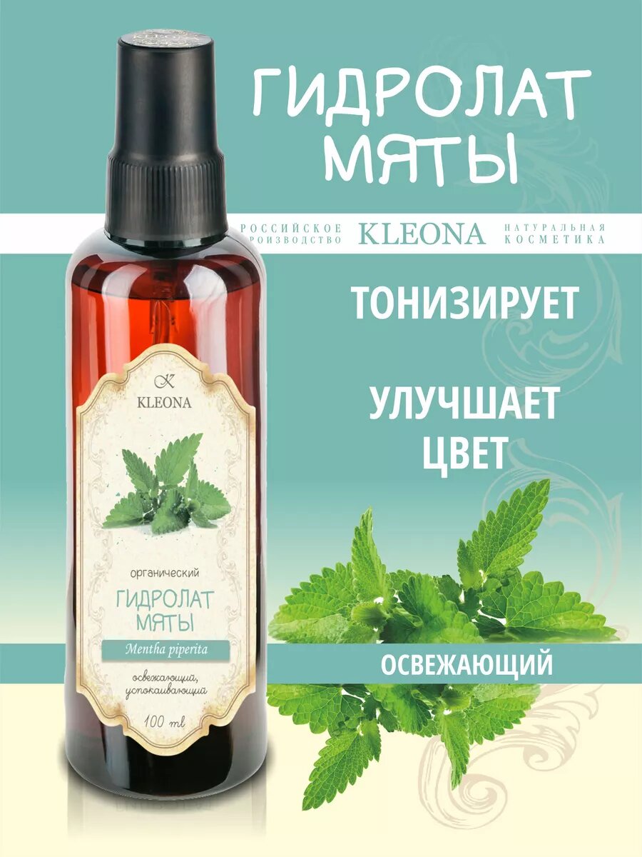 10 цен на Гидролат Мяты для лица и волос, KLEONA, подсушивает кожу и снимает раздражение, освежает и дезодорирует, 100мл