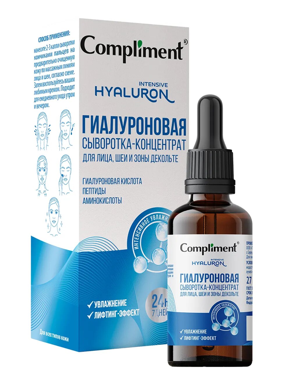 Compliment Гиалуроновая сыворотка-концентрат для лица, шеи и зоны декольте, 27 мл информация: