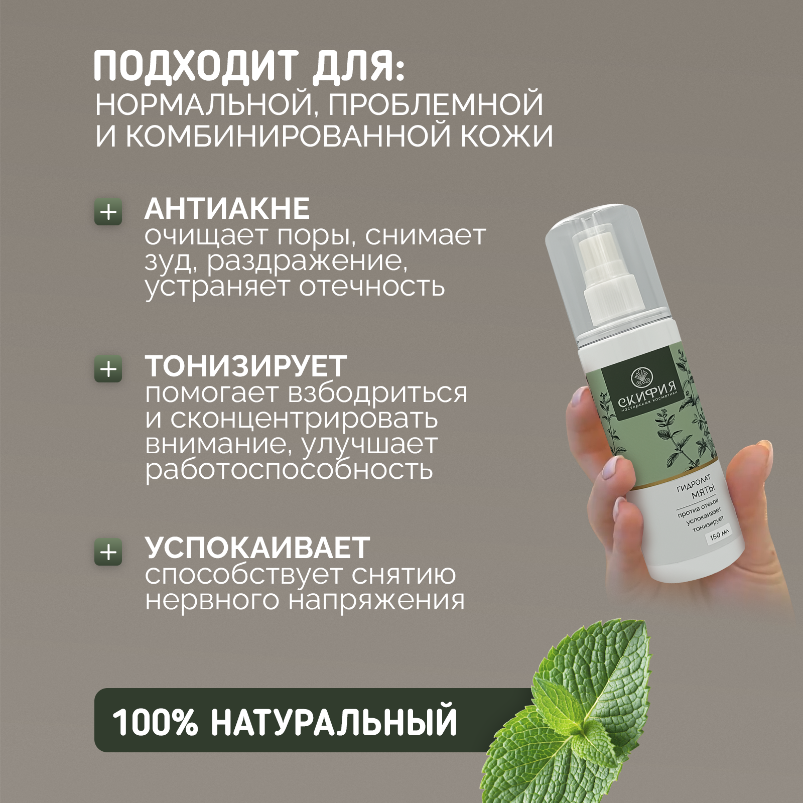 10 цен на Гидролат мяты для лица натуральный Скифия, 150 мл