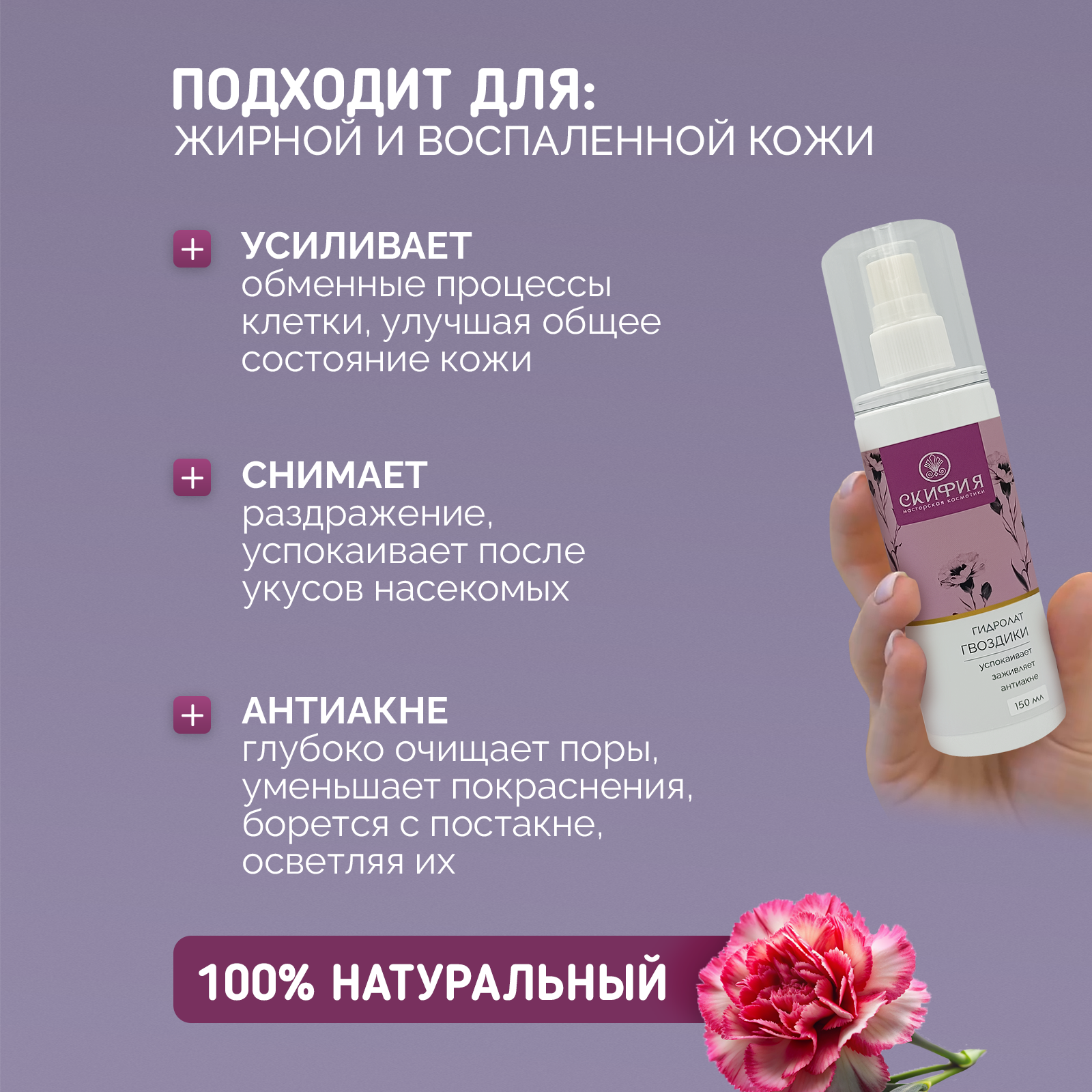 10 цен на Гидролат гвоздики натуральный для лица и тела Скифия, 150 мл