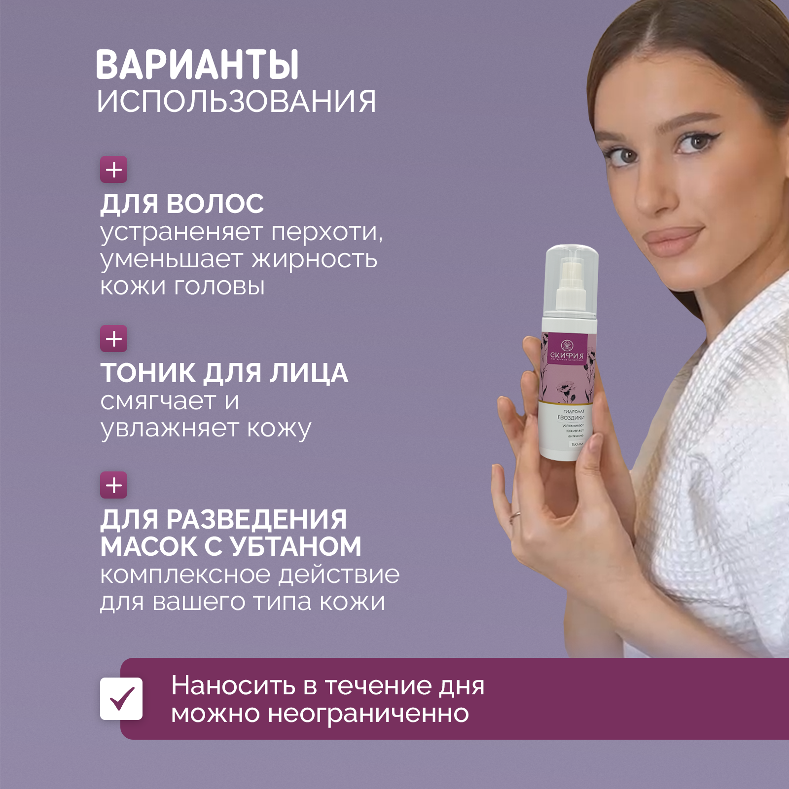 Гидролат гвоздики натуральный для лица и тела Скифия, 150 мл информация: