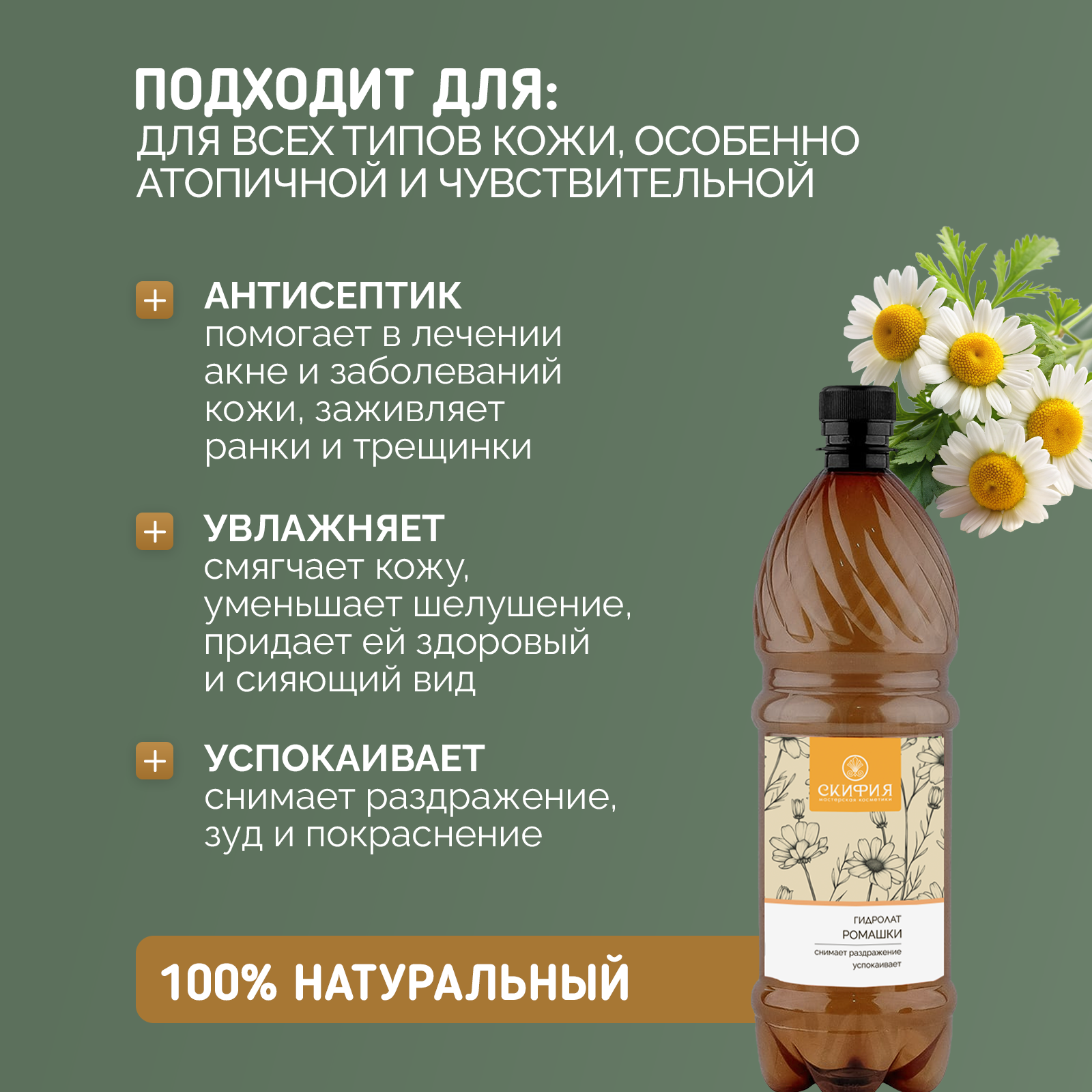 Гидролат ромашки для лица натуральный Скифия, 1 литр информация: