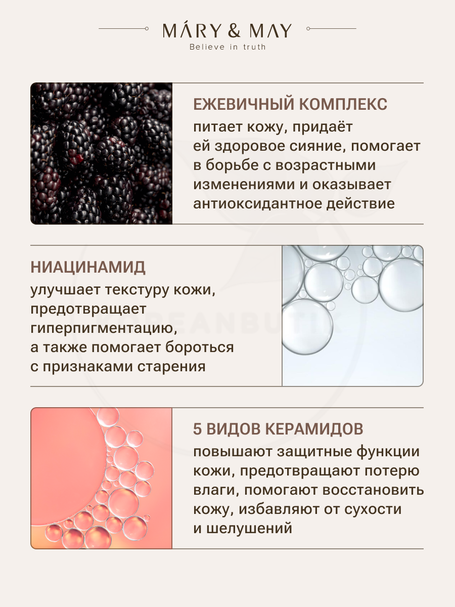 Отзывы на Крем для лица с идебеноном и ежевичным комплексом | Mary&May Idebenone Blackberry Intense Cream 12 g