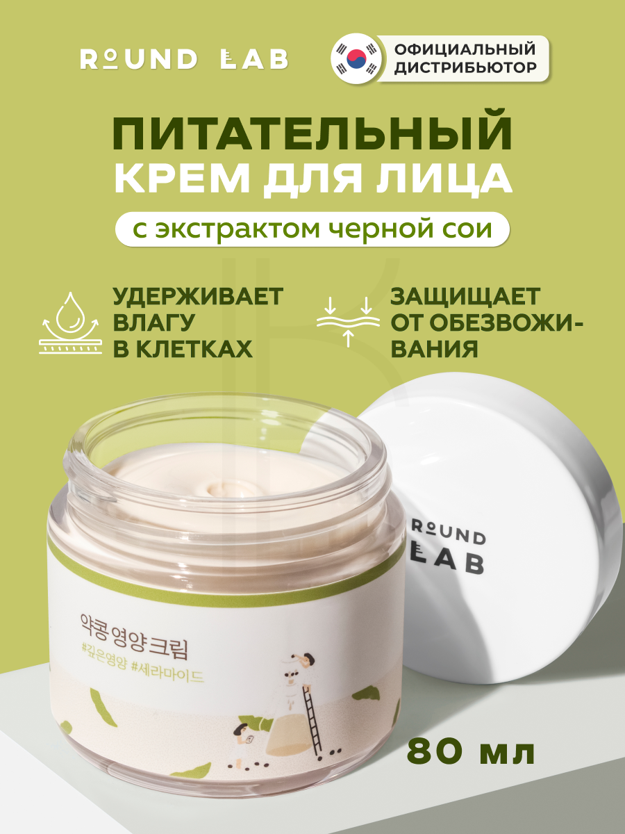 Крем для лица питательный с экстрактом черной сои | Round Lab Soybean Nourishing Cream 80ml информация: