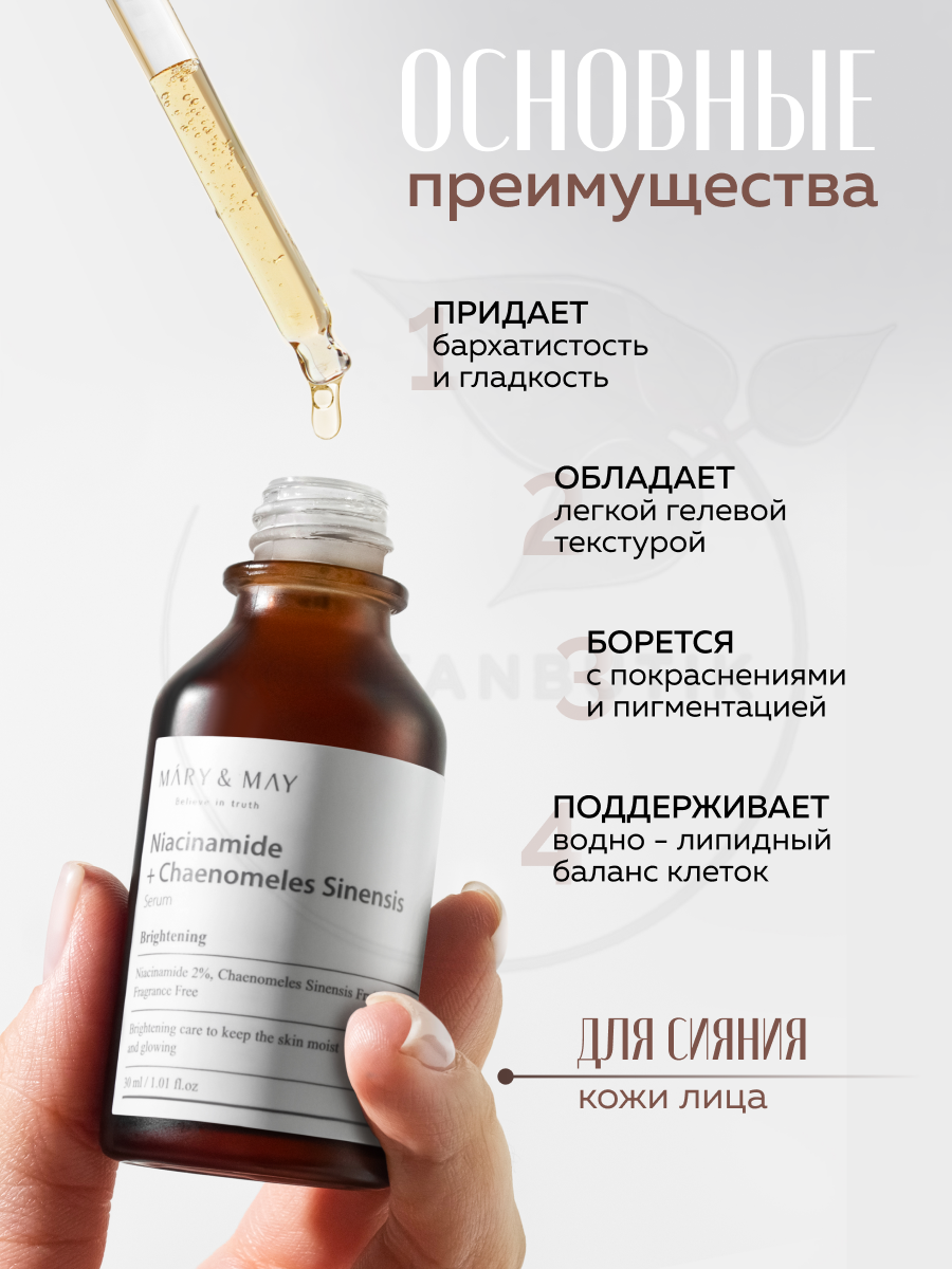 Сыворотка с ниацинамидом и экстрактом айвы | Mary&May Niacinamide + Chaenomeles Sinensis Serum 30ml информация: