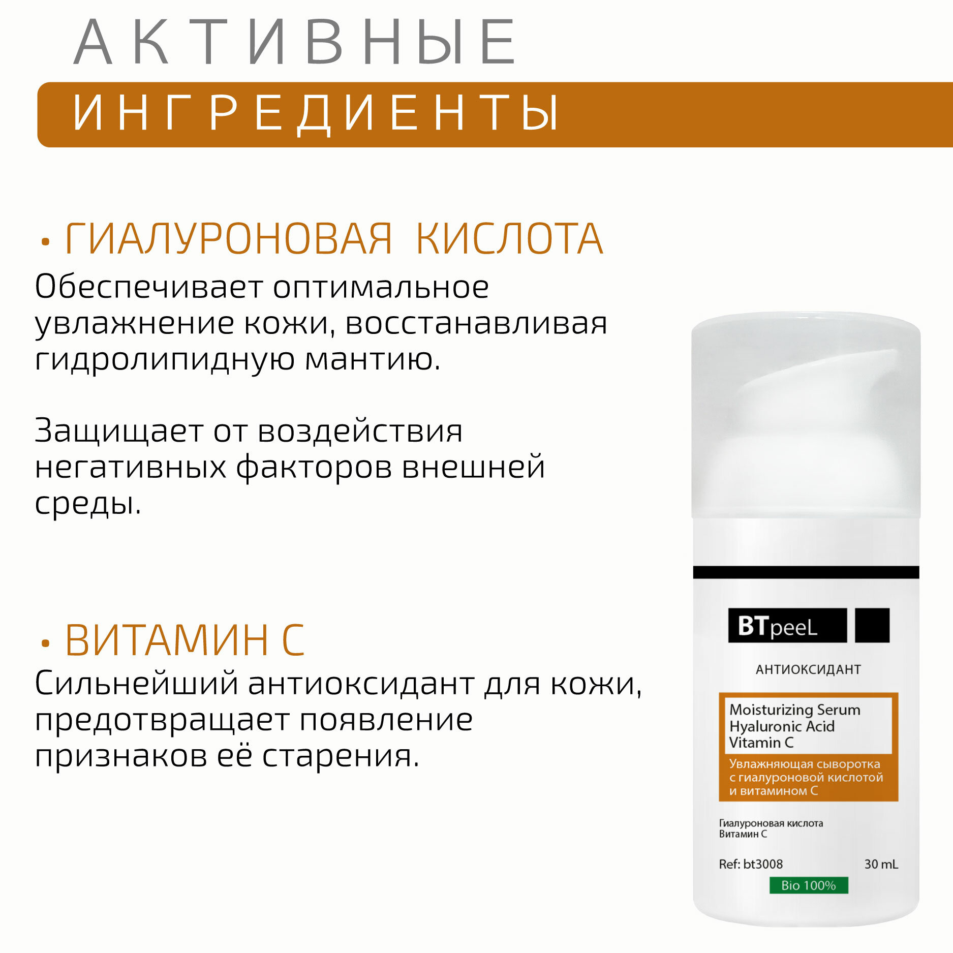 Увлажняющая сыворотка с витамином С и гиалуроновой кислотой BTpeel, 30 мл информация:
