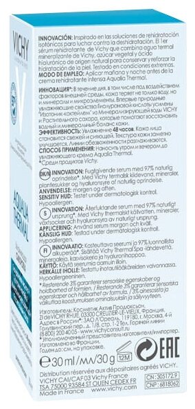 Виши аквалия термаль сыворотка для лица 30мл увлажн информация: