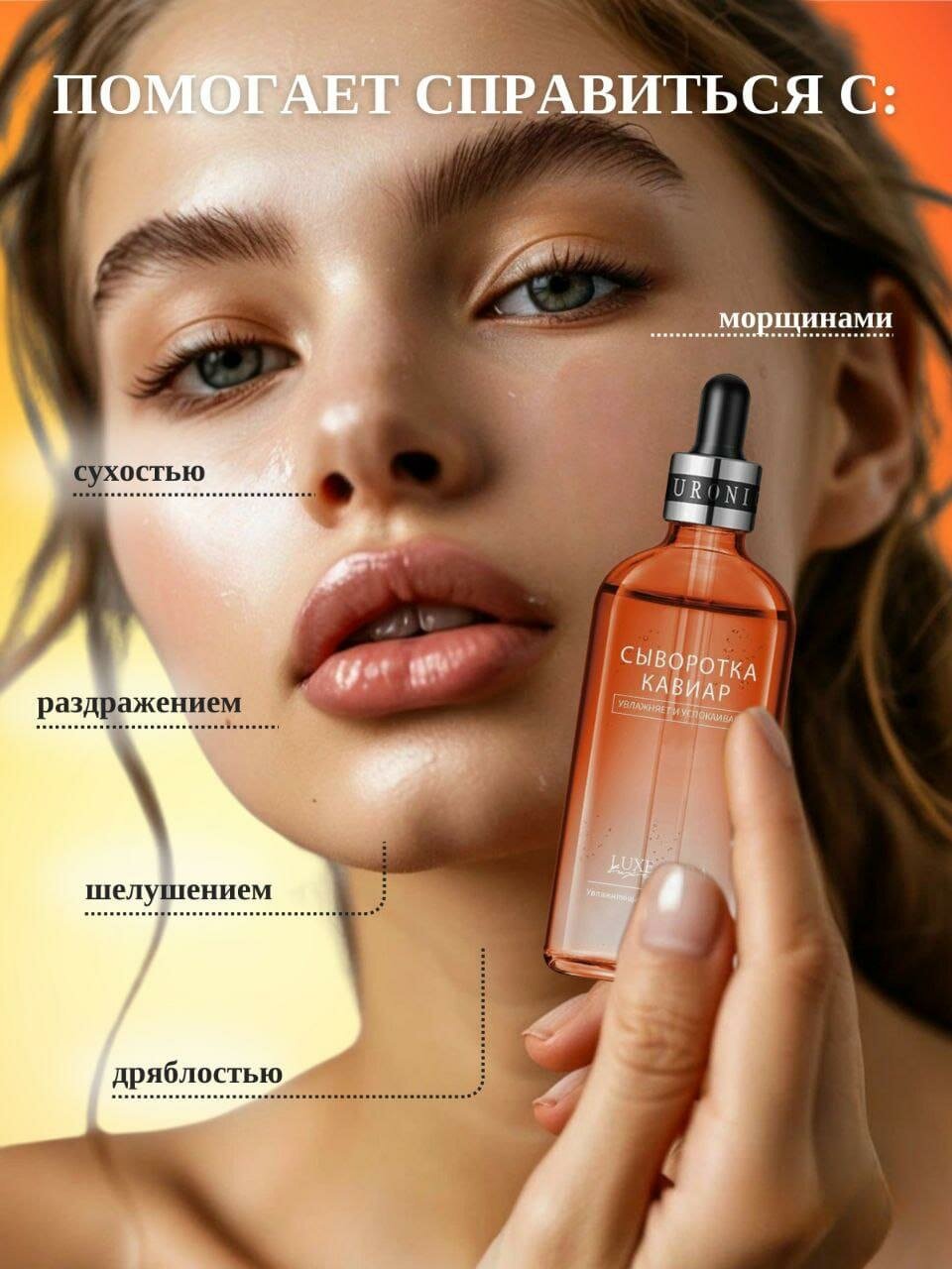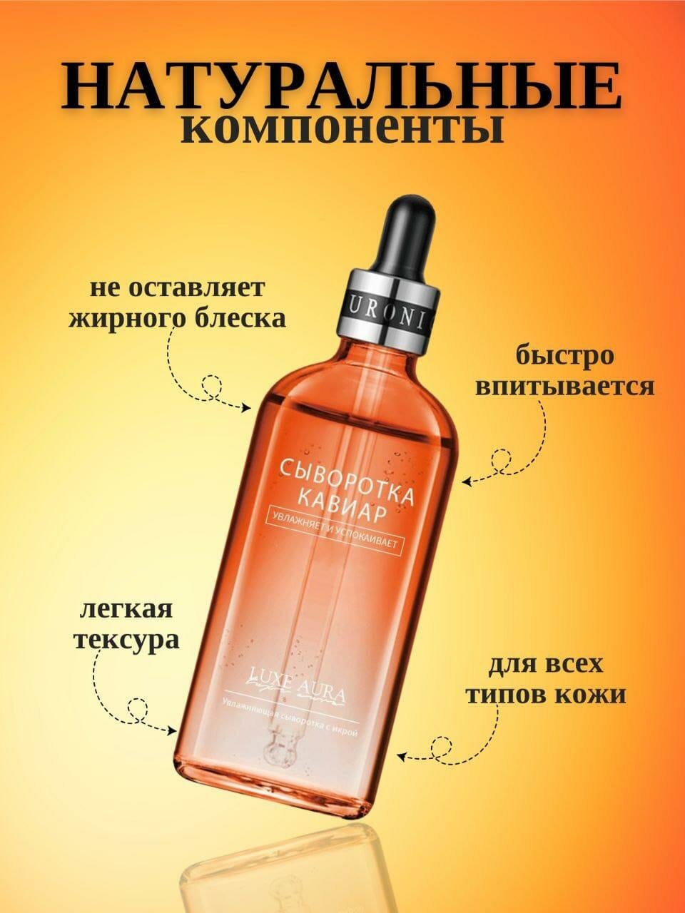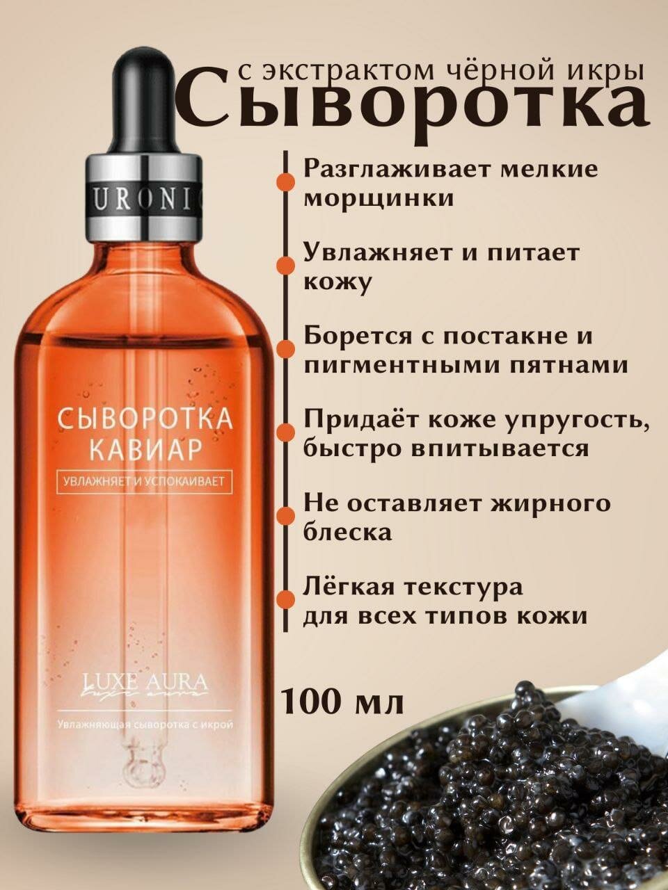 10 цен на Сыворотка для лица LUXE AURA с экстрактом черной икры: увлажняющая и успокаивающая, 100 мл.
