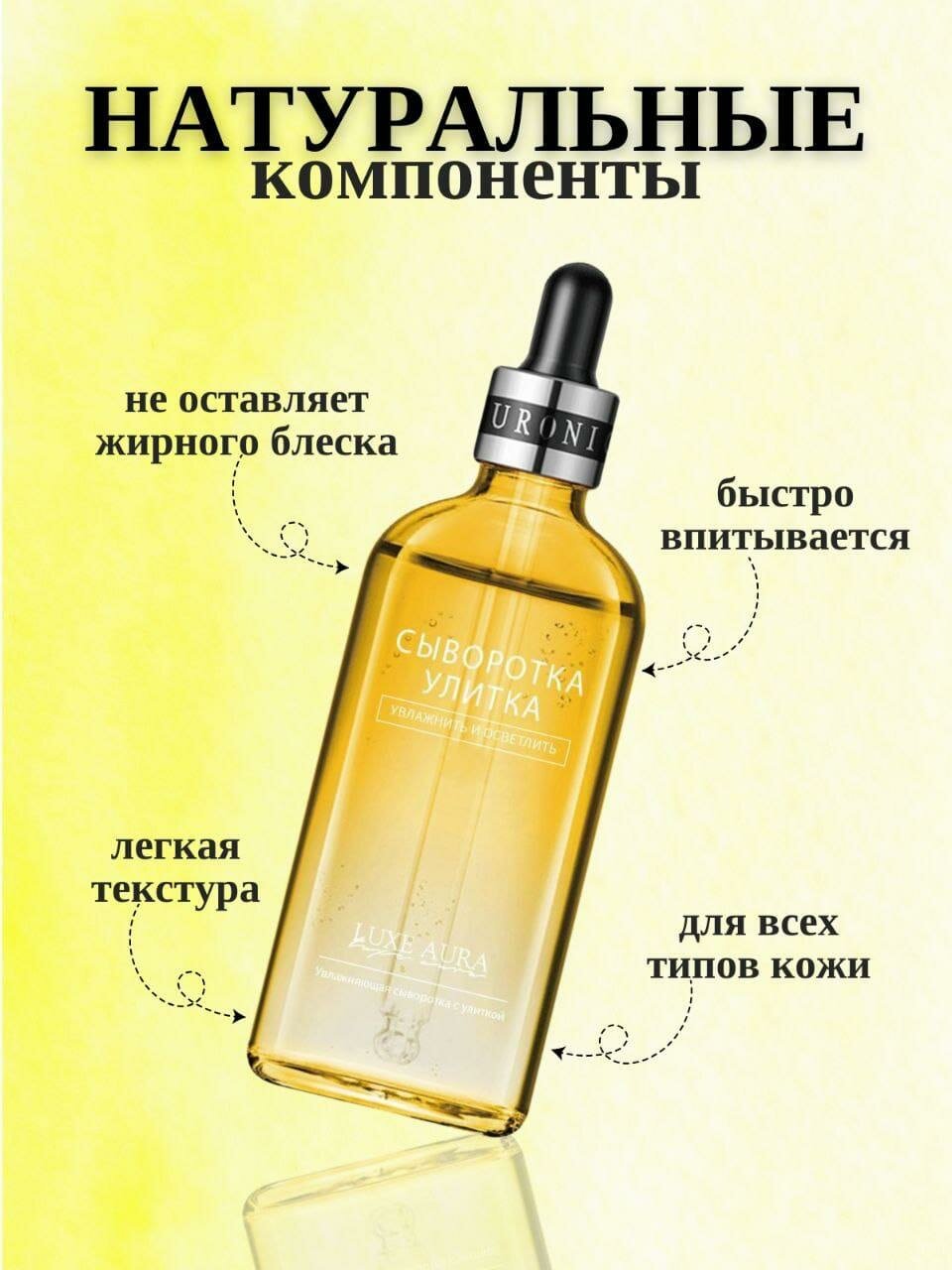 10 цен на Сыворотка для лица LUXE AURA с муцином улитки: увлажняющая и осветляющая, 100 мл.