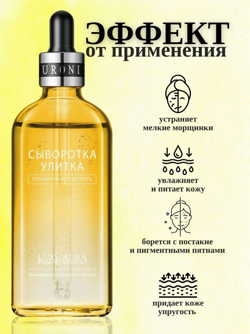 Сыворотка для лица LUXE AURA с муцином улитки: увлажняющая и осветляющая, 100 мл. информация: