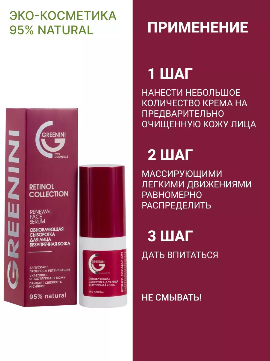 Greenini Обновляющая сыворотка для лица Безупречная кожа 30мл информация: