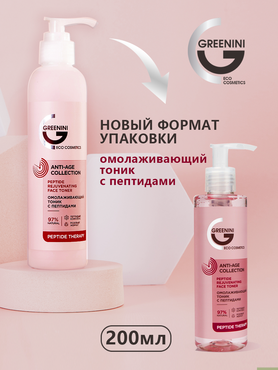 Отзывы на Greenini Омолаживающий тоник с пептидами и розовым жемчугом для омоложения и восстановления кожи 200мл