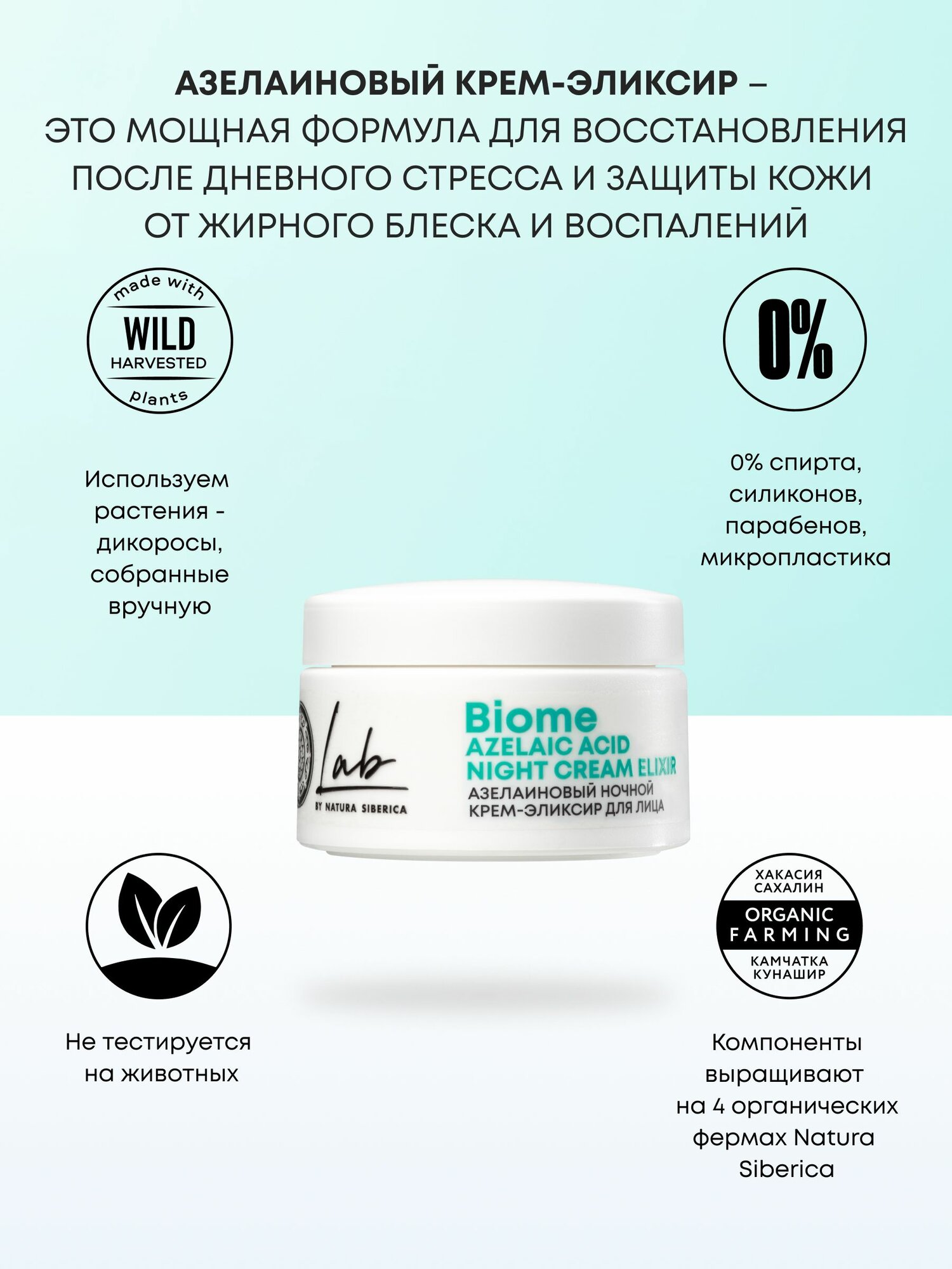 10 цен на Natura Siberica Lab Biome Ночной крем эликсир для жирной и проблемной кожи лица с азелаиновой кислотой увлажняющий и матирующий от прыщей 50 мл
