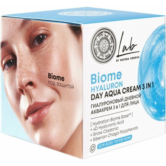Natura Siberica Lab Biome Дневной аква крем 3 в 1 для лица гиалуроновый увлажняющий, омолаживающий антивозрастной лифтинг от морщин 50 мл 352 ₽