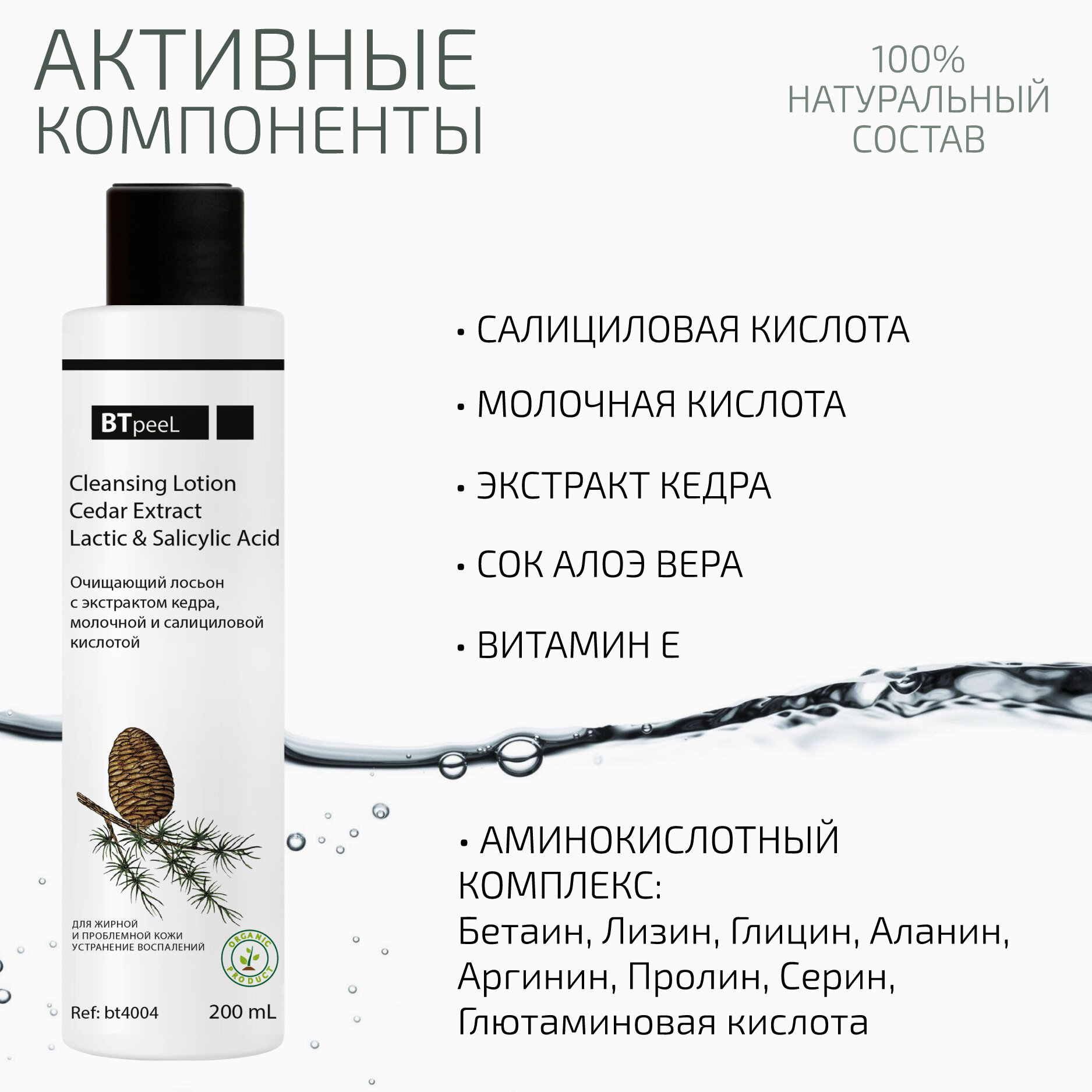 Очищающий лосьон с экстрактом кедра, молочной и салициловой киcлотой BTpeel, 200 мл информация: