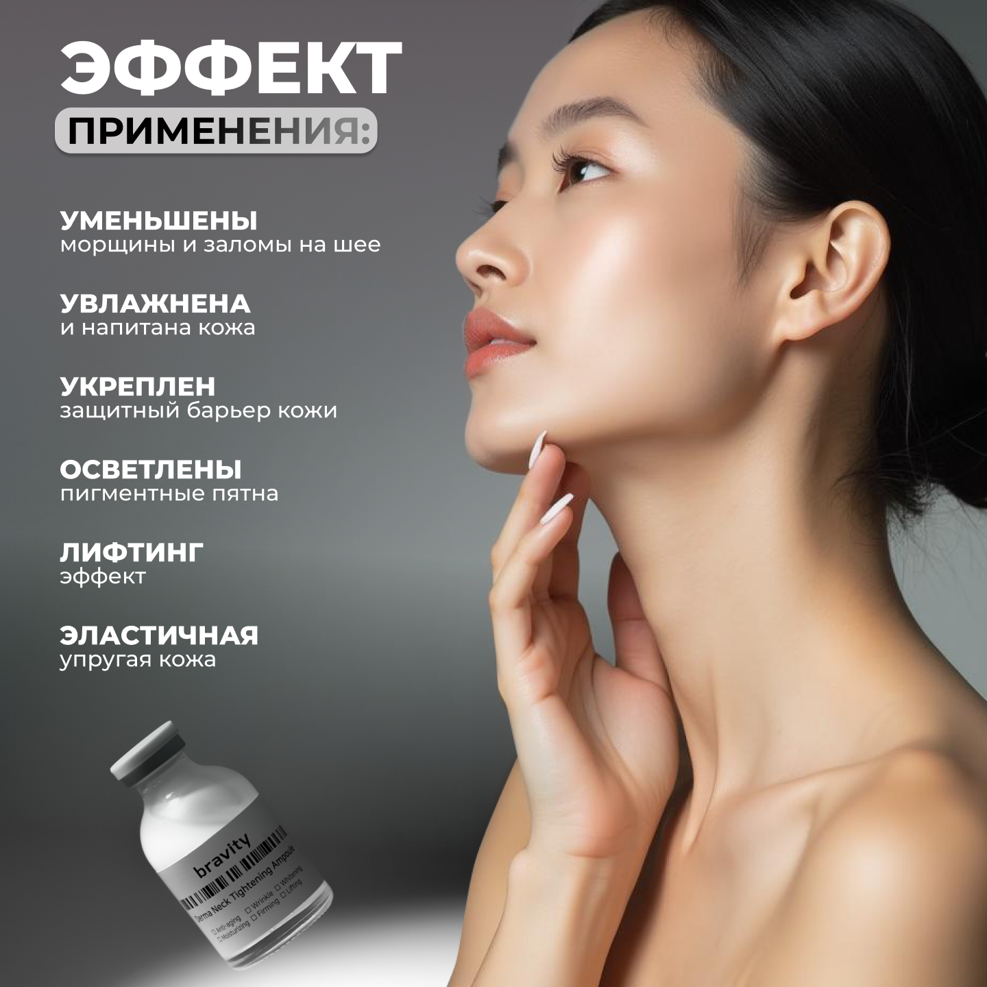 Bravity Ампульная сыворотка-лифтинг кожи шеи и декольте с пептидом (ботокс эффект) Derma Tightening Neck Ampoule 30 мл информация: