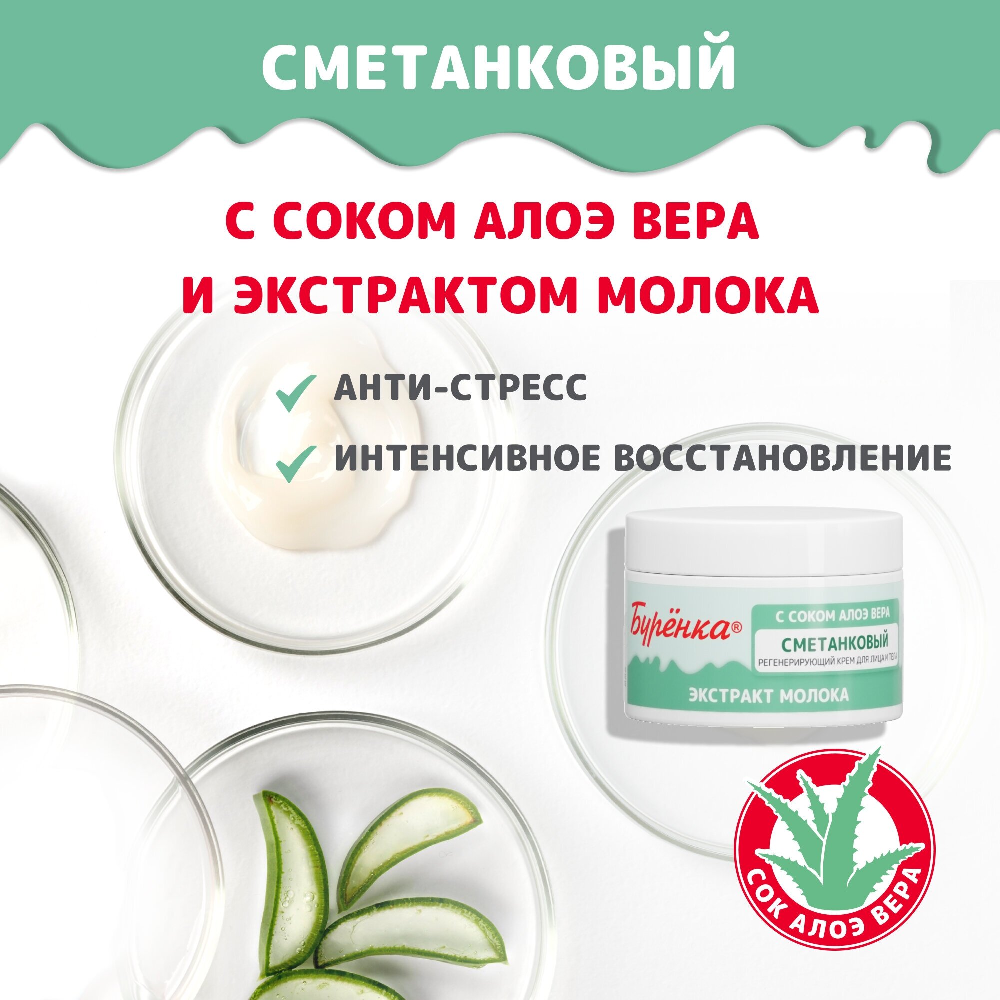 Крем для лица Буренка с соком Алоэ Вера, с натуральным маслом Кокоса увлажняющий, регенерирующий кожу Сметанковый, 100мл информация: