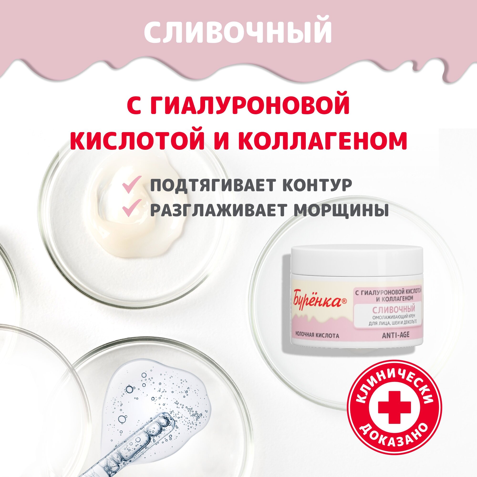 Крем для лица омолаживающий Буренка для шеи и декольте против морщин с коллагеном гиалуроновой, молочной кислотами 100мл информация: