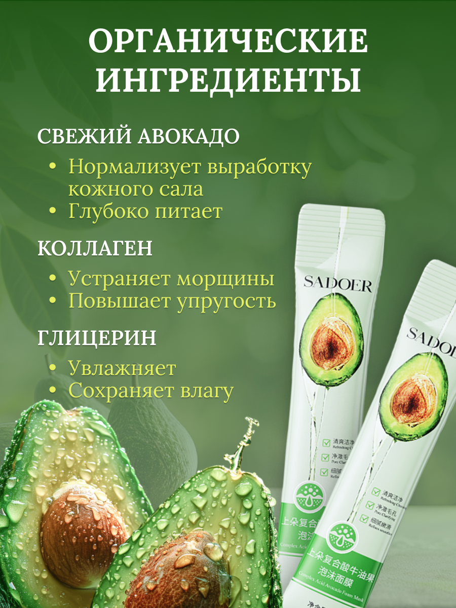 Пузырьковая очищающая маска для лица Sadoer от черных точек и жирного блеска с коллагеном и гиалуроновой кислотой в саше / Увлажняющая Bubble маска для сужения пор / Питательная и успокающая крем маска от отеков информация: