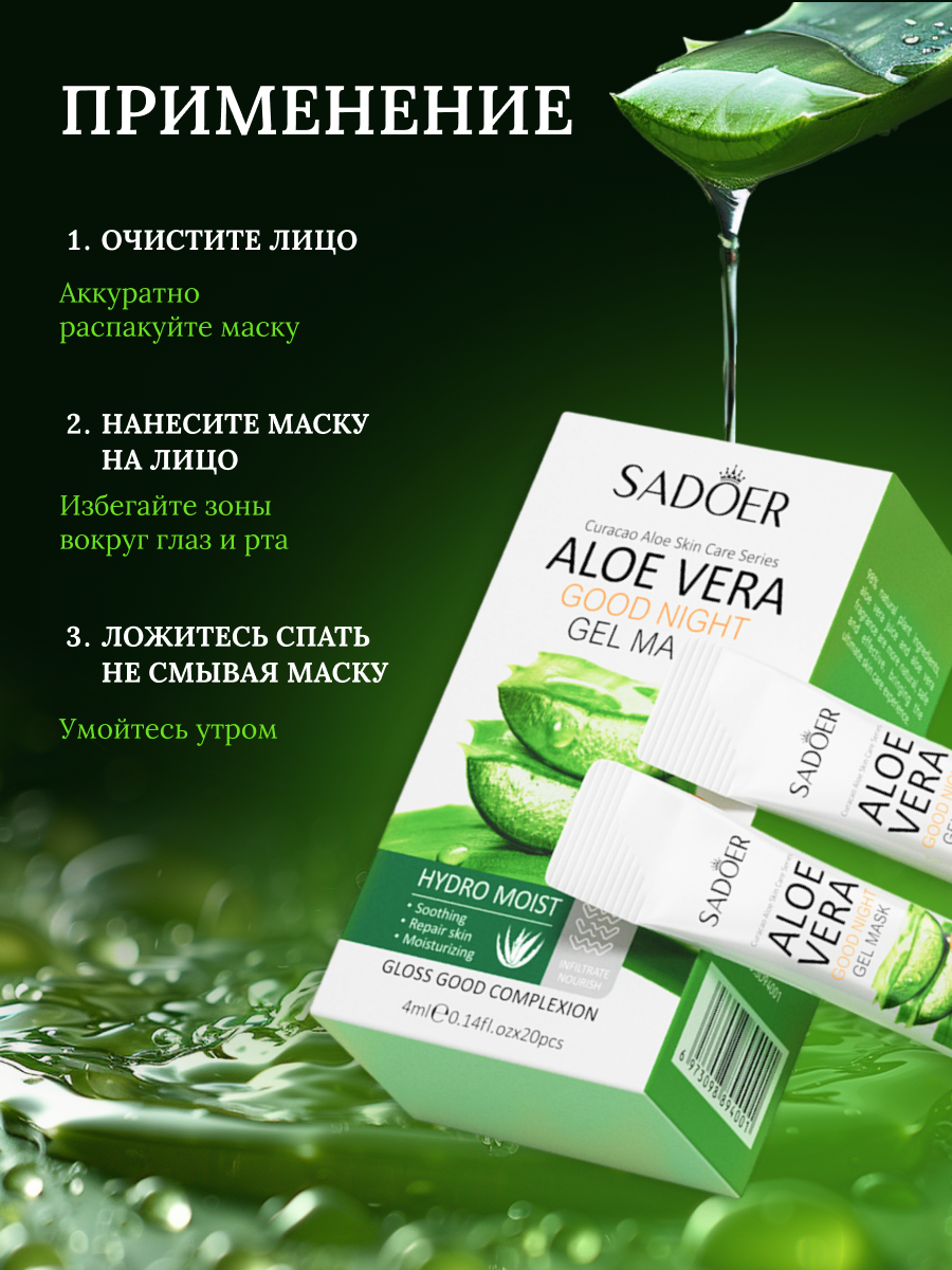 Увлажняющая гелевая ночная маска для лица Sadoer с соком алоэ вера 20 шт. по 4 мл. х 3 уп. 519 ₽
