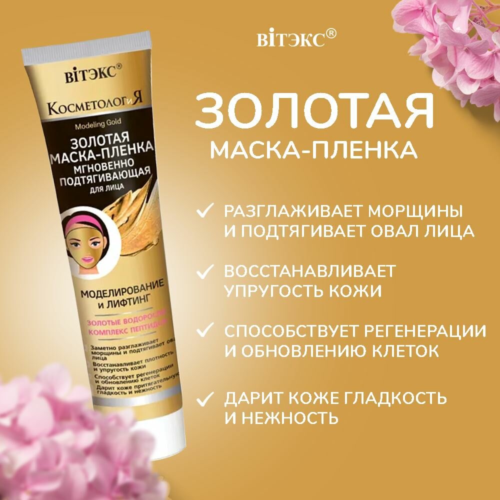 10 цен на Витэкс Золотая маска-пленка для лица 100мл + Черная маска-пленка для лица 100мл, "косметология" (спайка 2 шт. по 100мл)
