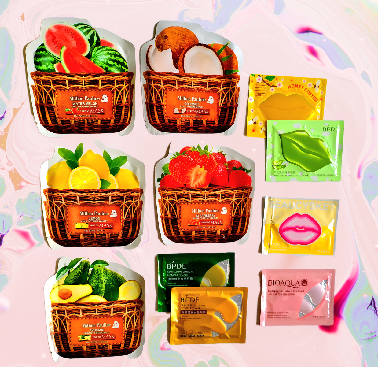 10 цен на Набор из 11 тканевых масок для лица, гидрогелевых патчей для глаз и губ.