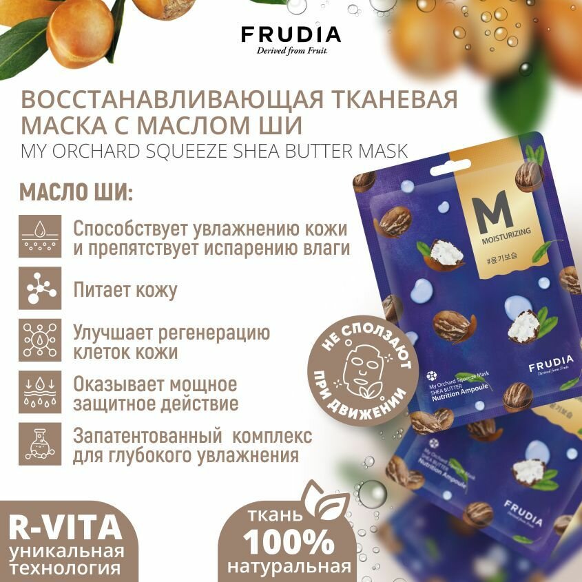 FRUDIA Маски для лица тканевые набор восстанавливающие с маслом ши 1шт 20мл, Корея информация: