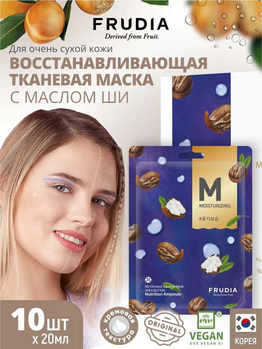 Отзывы на FRUDIA Маски для лица тканевые набор восстанавливающие с маслом ши 10шт*20мл, Корея