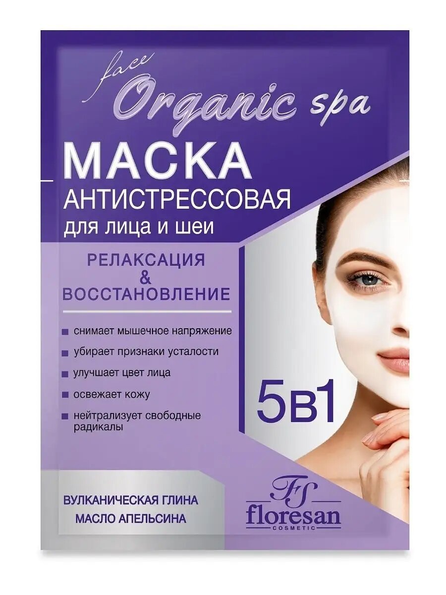 10 цен на Floresan Маска для лица и шеи Антистрессовая, релаксирующая 15мл, 10 шт