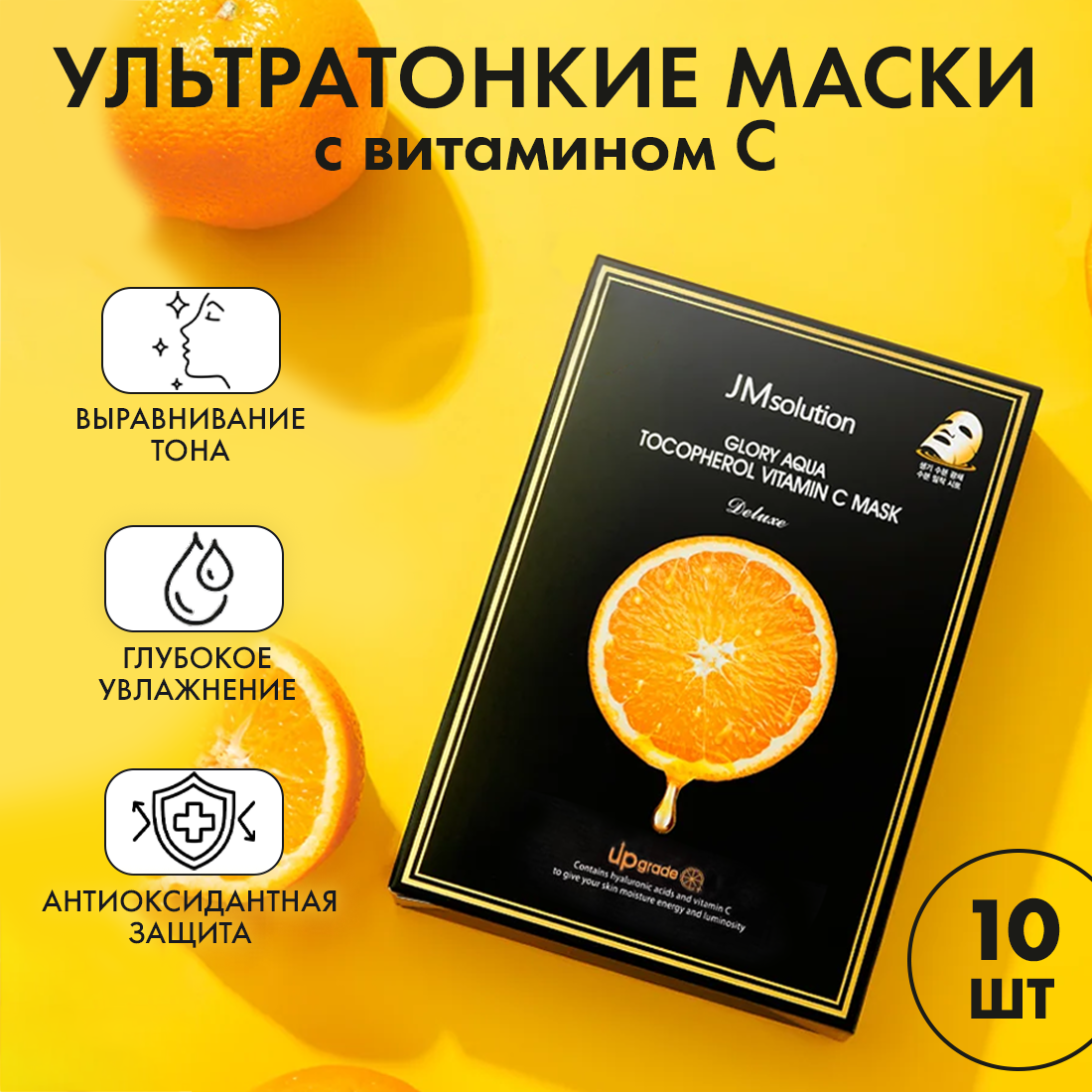 10 цен на Маска для лица с витамином С и пептидами JMsolution GLORY AQUA TOCOPHEROL VITAMIN C MASK DELUXE, Корея 10 шт