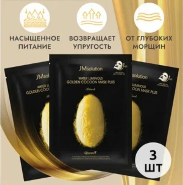 Отзывы на JMsolution Омолаживающая маска с протеинами кокона золотого шелкопряда WATER LUMINOUS GOLDEN COCOON MASK BLACK, 3 штуки