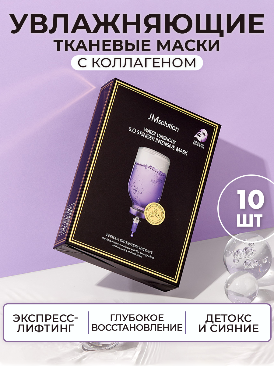 10 цен на Маска тканевая для лица с коллагеном JMSOLUTION WATER LUMINOUS S.O.S RINGER INTENSIVE MASK, Корея 10 штук