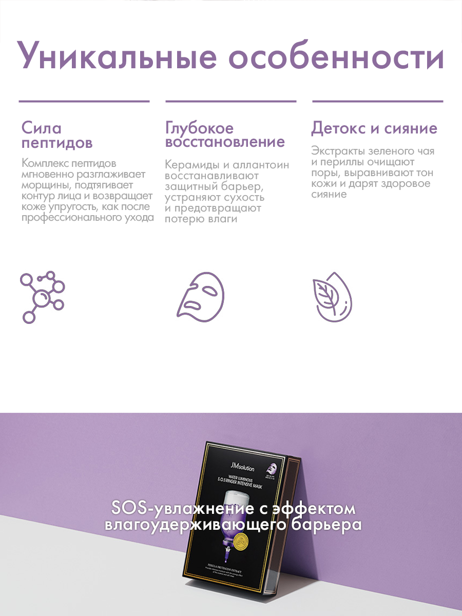 Маска тканевая для лица с коллагеном JMSOLUTION WATER LUMINOUS S.O.S RINGER INTENSIVE MASK, Корея 10 штук информация: