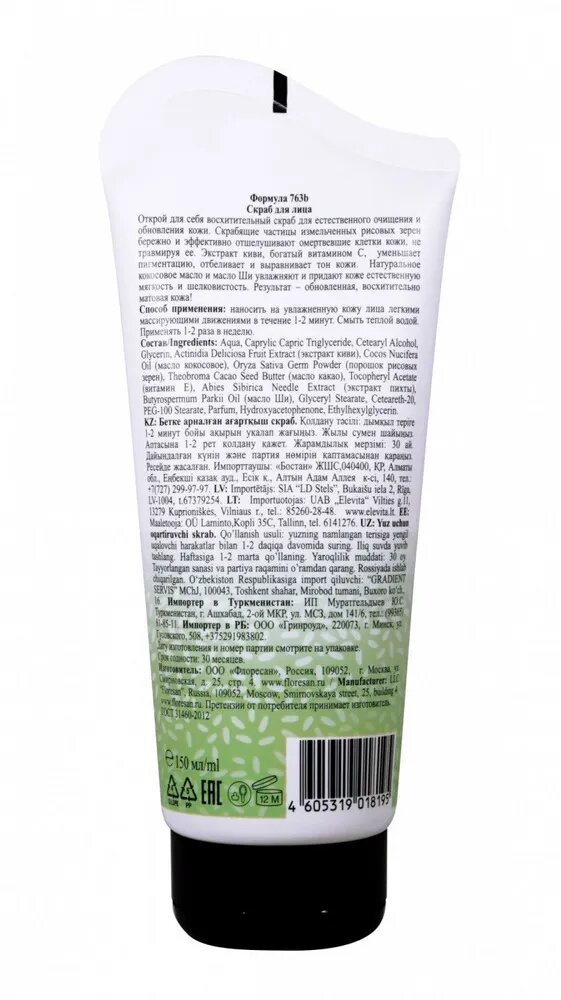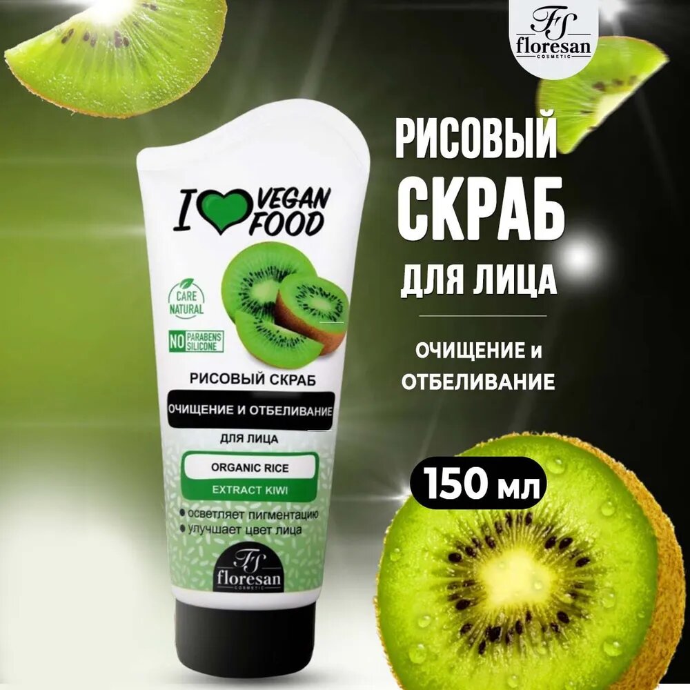 Floresan Рисовый Скраб для лица Очищение и отбеливание Киви , 150 мл информация:
