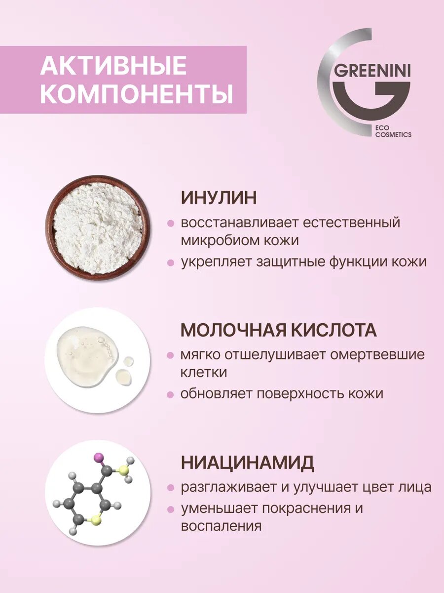Пилинг-скатка Greenini Microbiome, с пребиотиками и ниацинамидом, для всех типов, 75 мл информация: