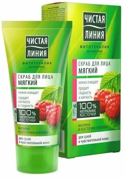 Отзывы на Чистая линия скраб для лица Мягкий, Малина и Косточки клюквы , 50 мл 2 шт.