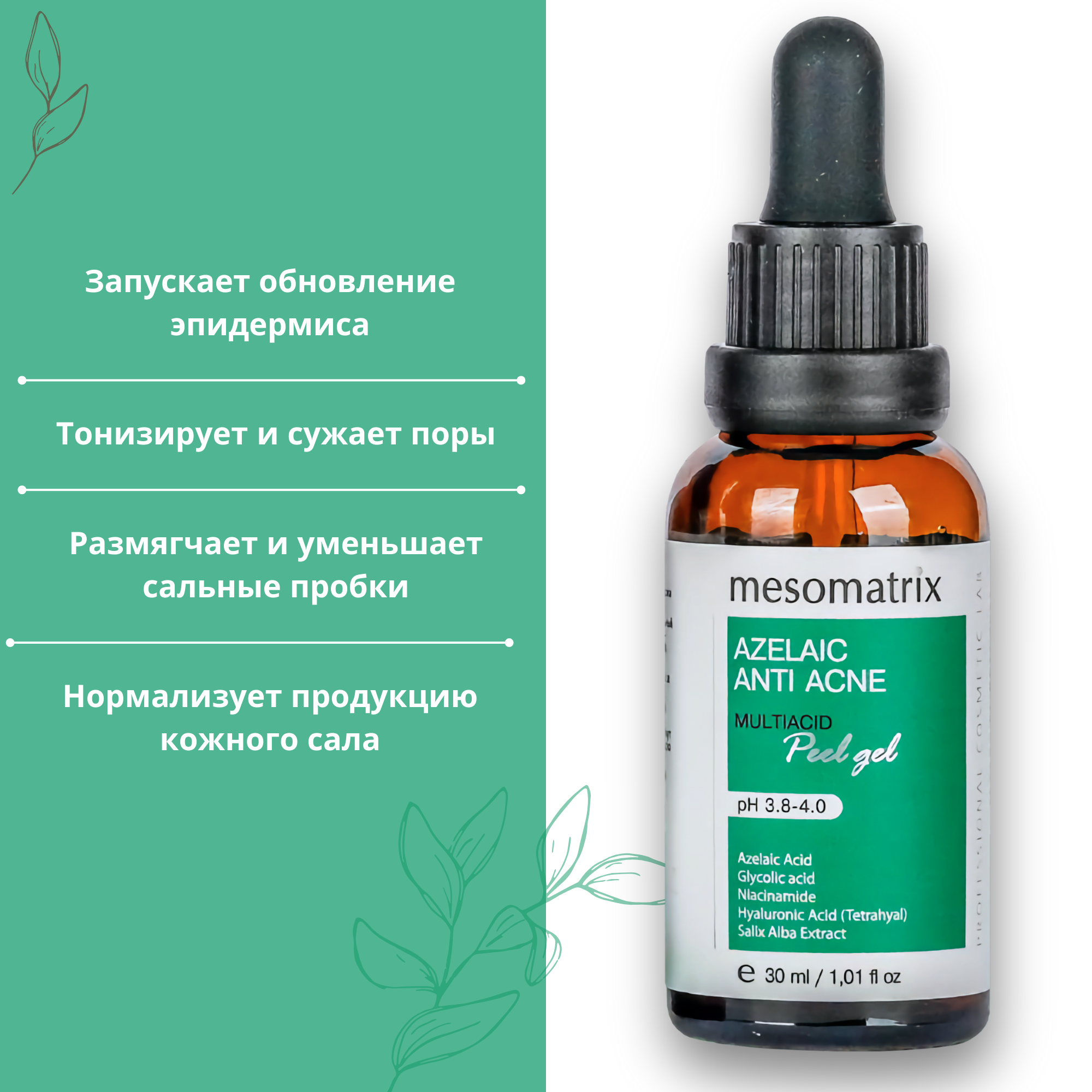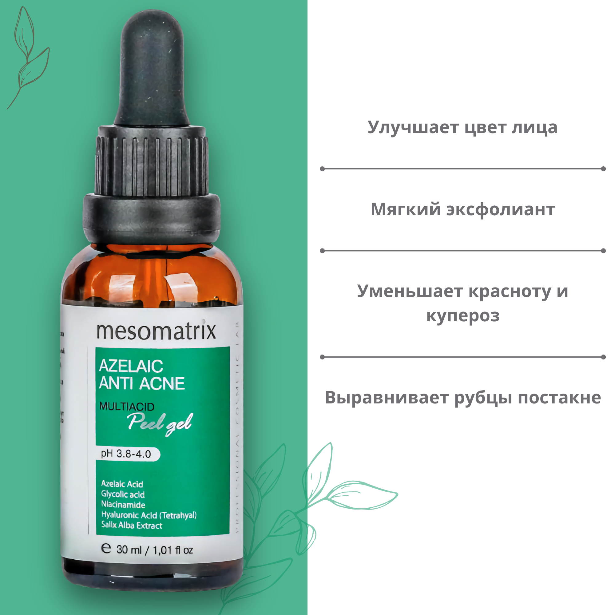 Пилинг для лица с азелаиновой кислотой от акне и постакне Mesomatrix,30 мл информация: