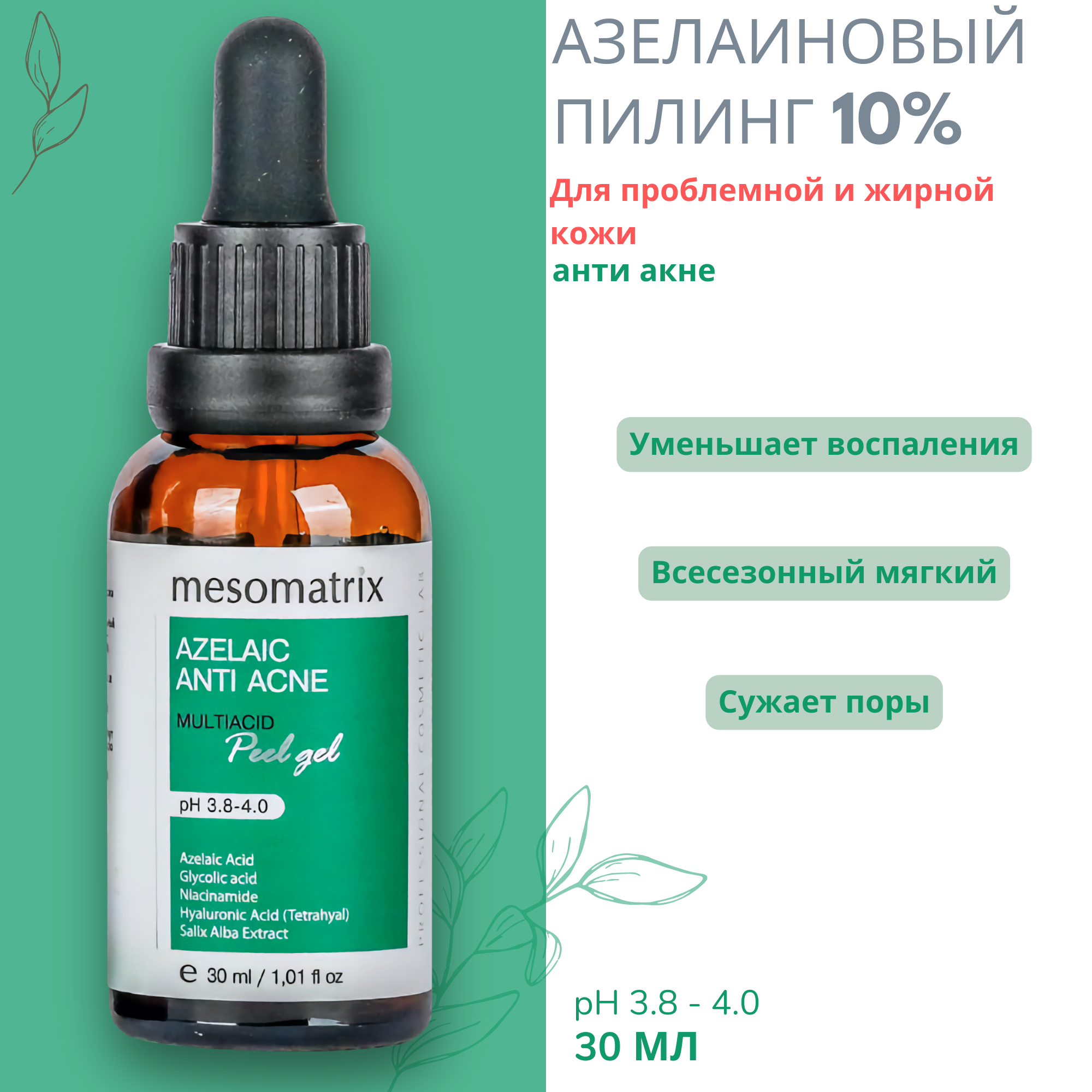 10 цен на Пилинг для лица с азелаиновой кислотой от акне и постакне Mesomatrix,30 мл