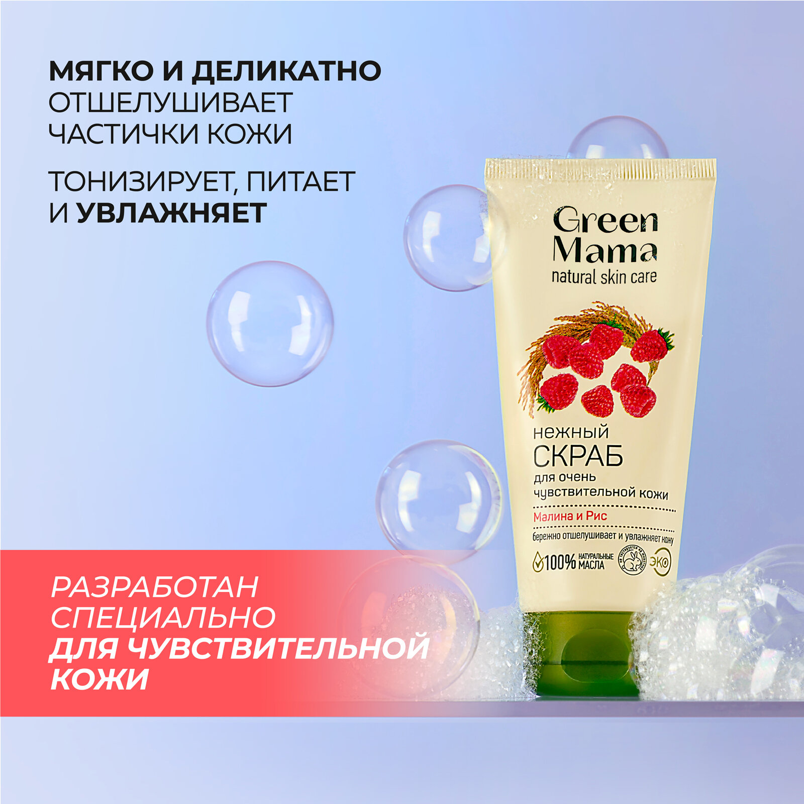 Скраб для лица для очень чувствительной кожи GREEN MAMA малина и рис нежный 100 мл - 2 шт информация: