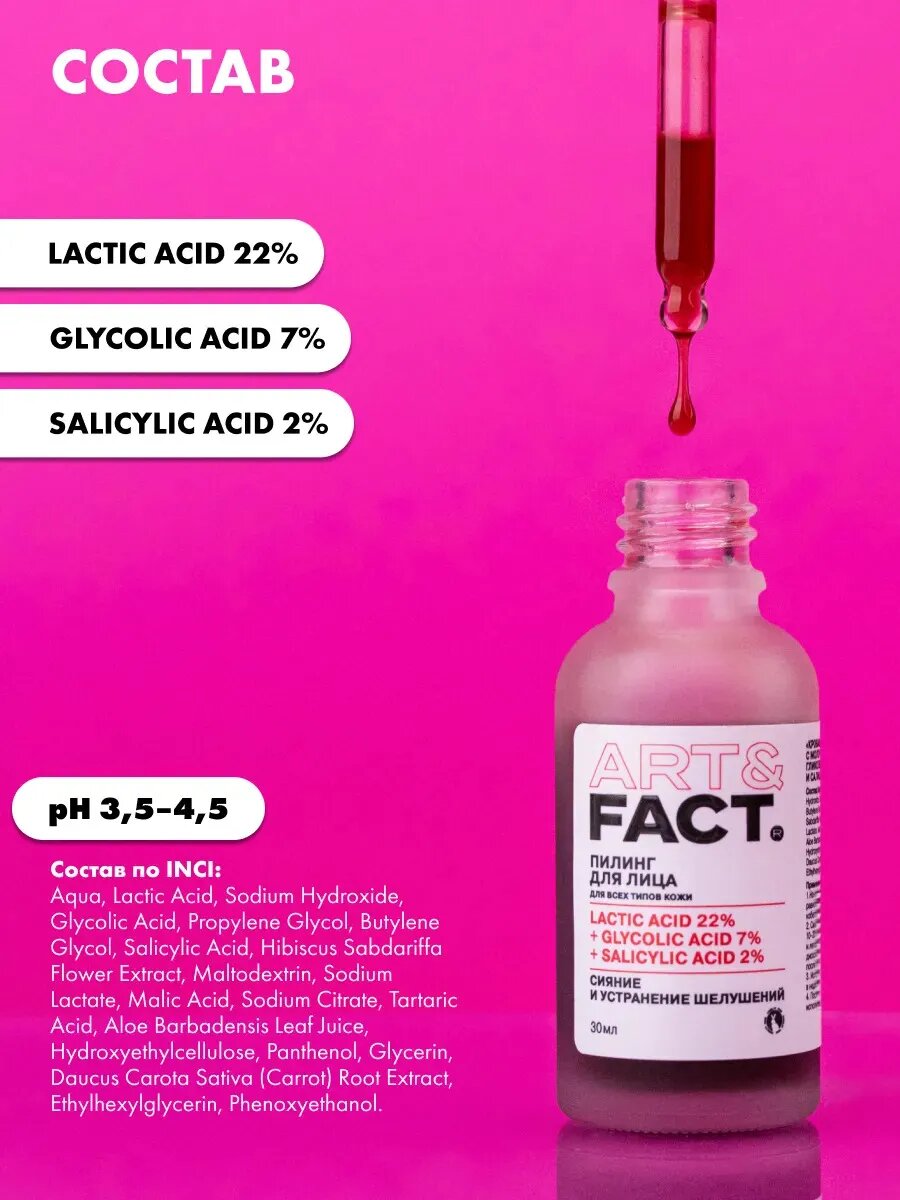 10 цен на Кровавый пилинг ART&FACT, для лица, с эффектом сияния, 30мл