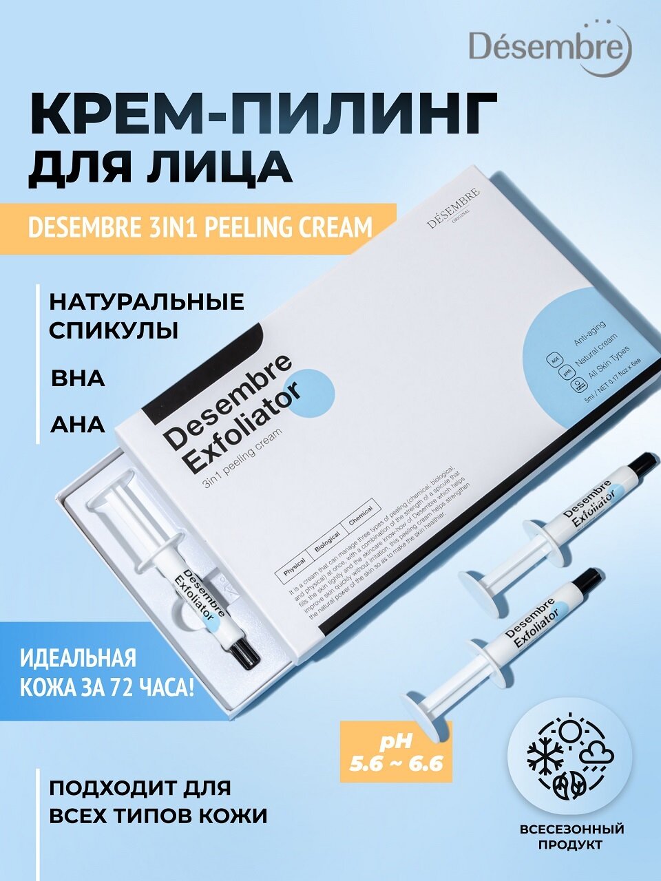 DESEMBRE 3INI Peeling Cream Отшелушивающий обновляющий крем пилинг для лица 3 в 1, курсовой набор 5г*6шт информация: