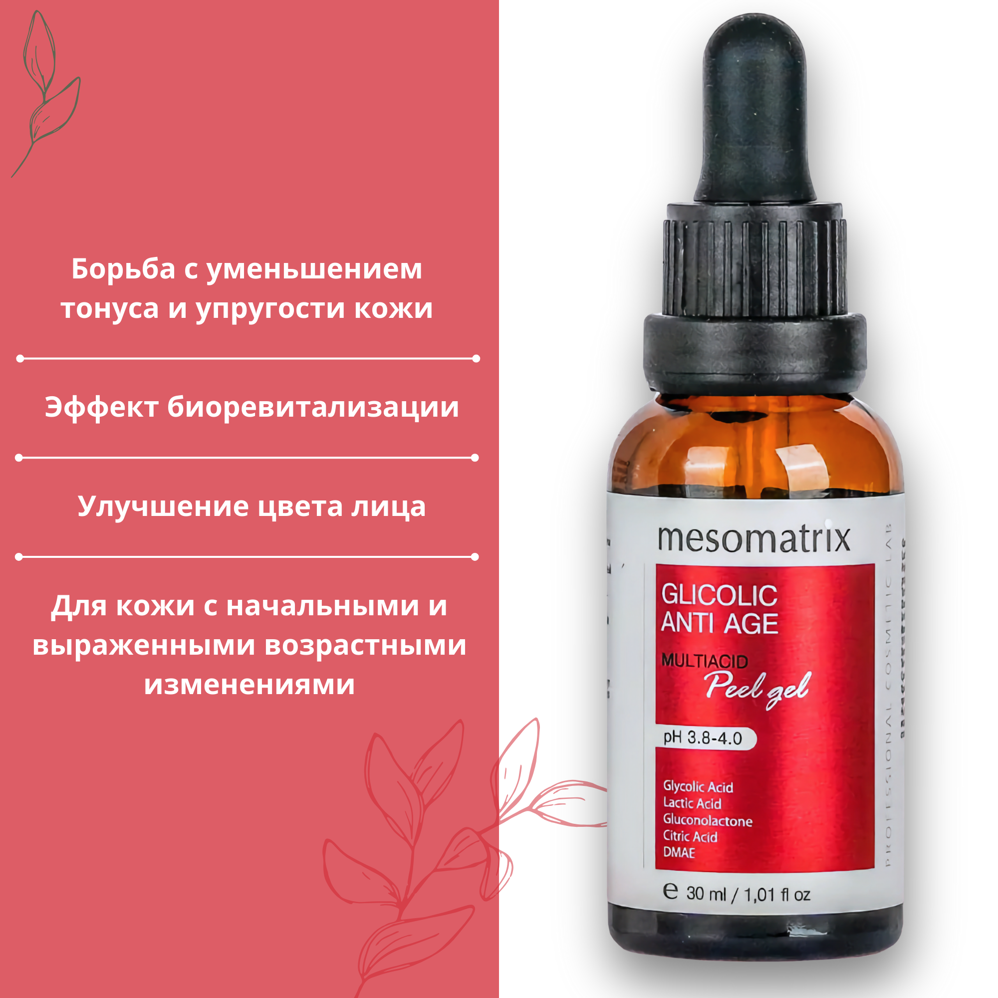 10 цен на Пилинг для лица гликолевый всесезонный антивозрастной Mesomatrix,30 мл