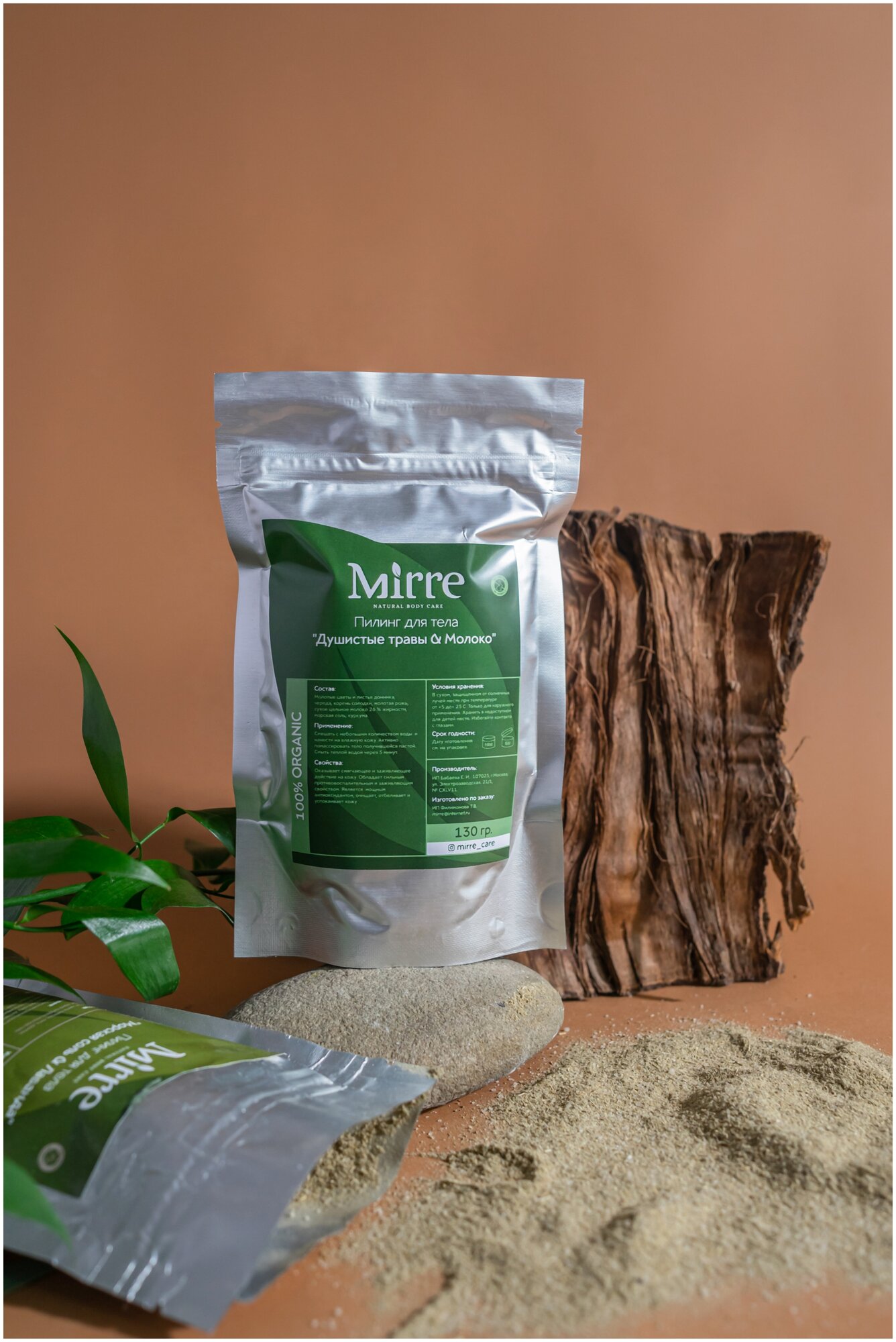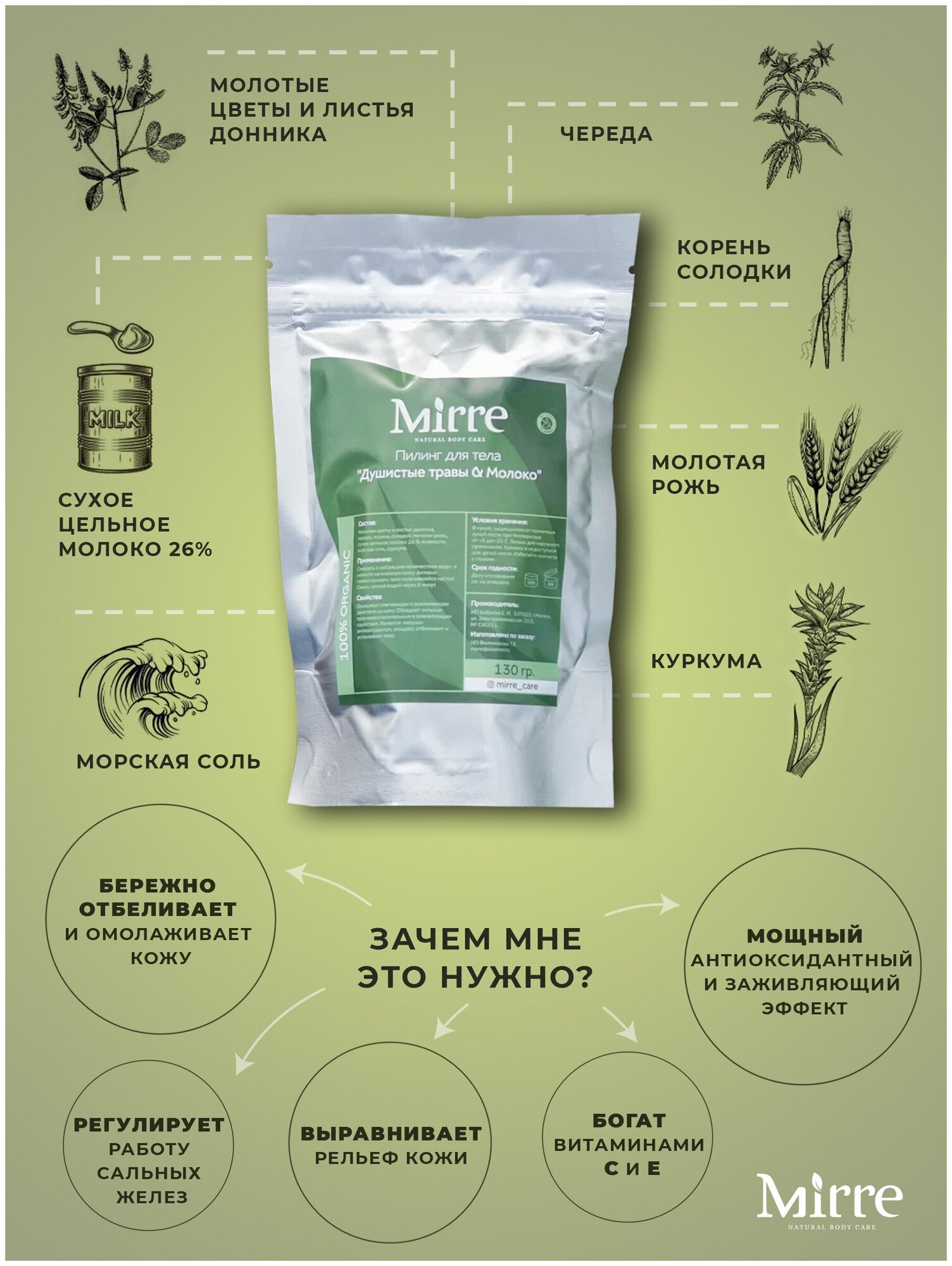 Пилинг натуральный травяной для лица и тела MIRRE "Душистые травы & Молоко" информация:
