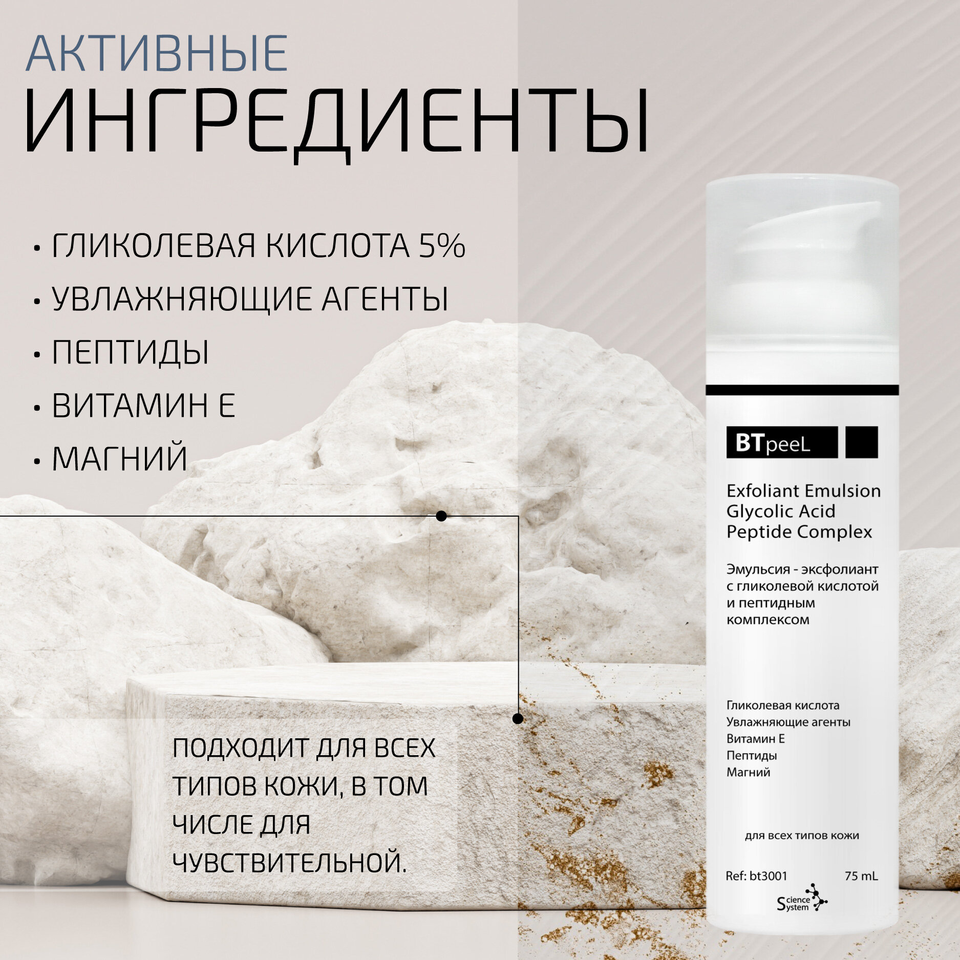 10 цен на Эмульсия-эксфолиант с гликолевой кислотой и пептидным комплексом BTpeel 75 мл