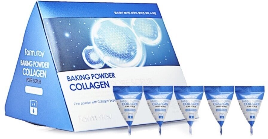 10 цен на FarmStay Baking Powder Collagen Pore Scrub Скраб в пирамидках для очищения пор с содой Упаковка (25шт)