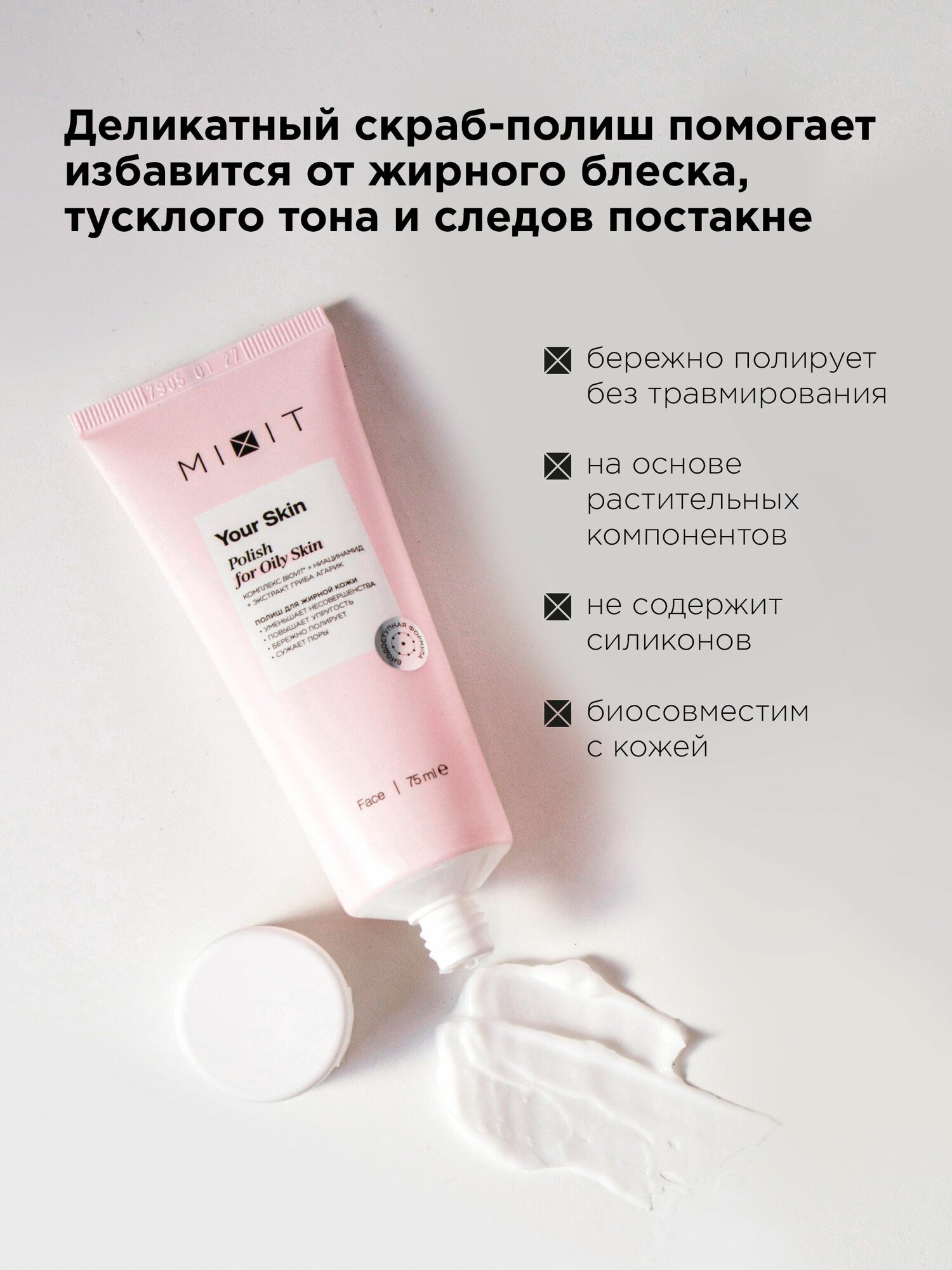 Отзывы на MIXIT Скраб для лица отшелушивающий очищающий против черных точек и акне Your Skin, 75 мл.