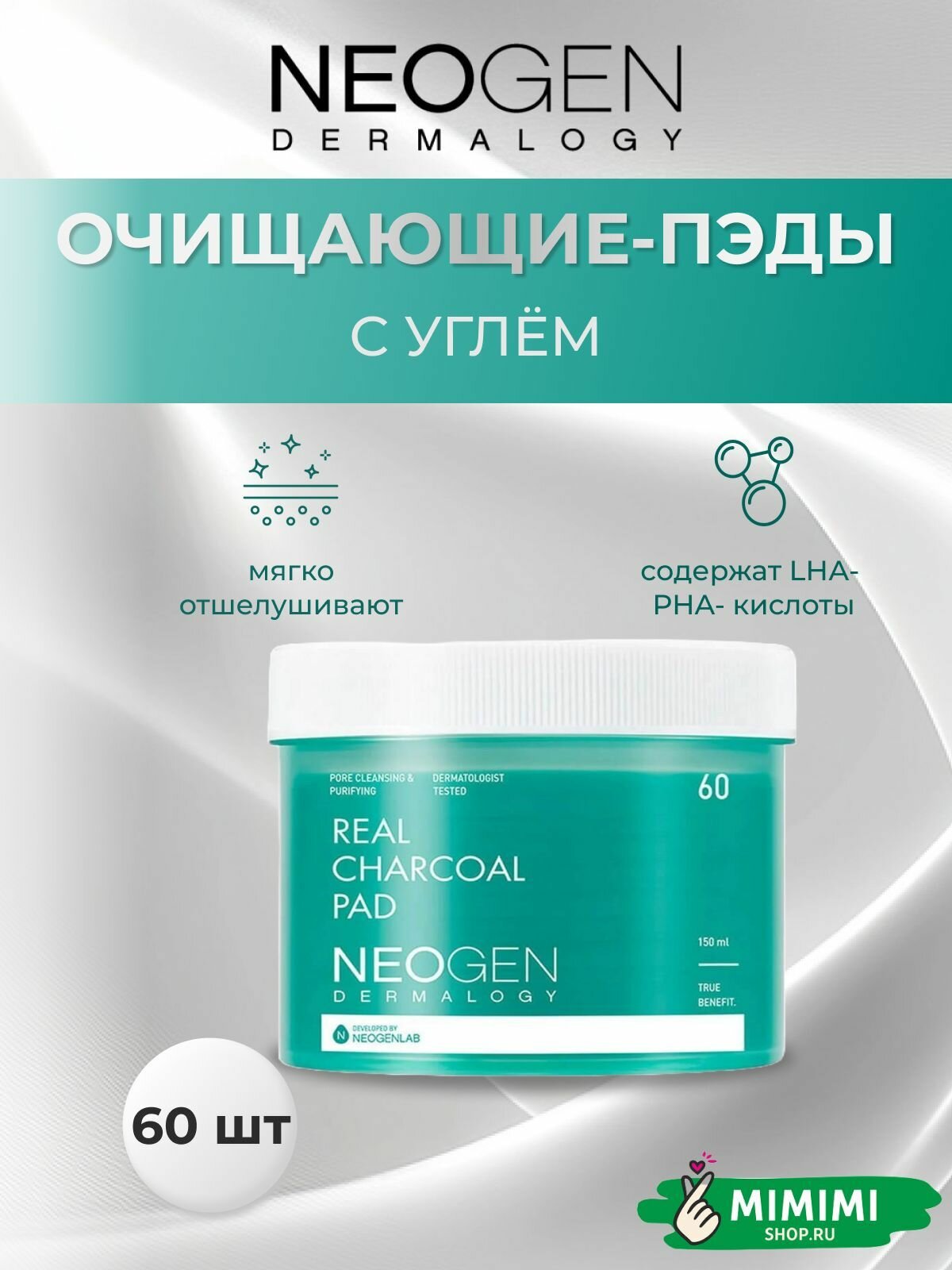 Neogen Очищающие пэды с древесным углём Neogen Dermalogy Real Charcoal Pad, 60шт информация: