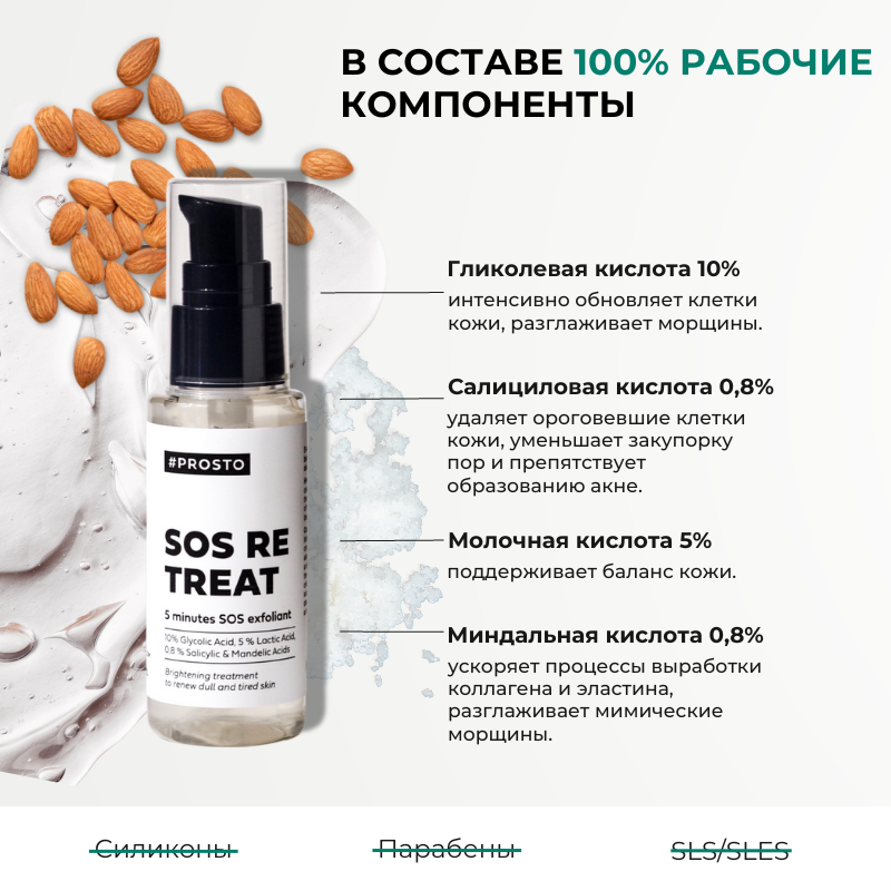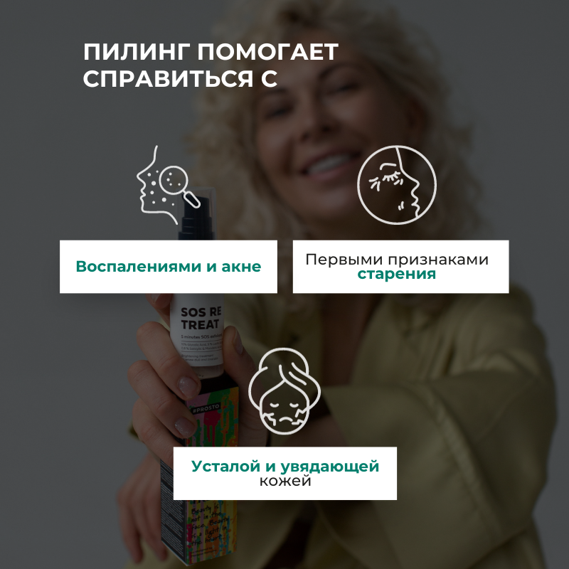 Пилинг для лица профессиональный с кислотами от пигментных пятен, прыщей, акне Prosto Cosmetics Sos Re Treat, 50 мл информация: